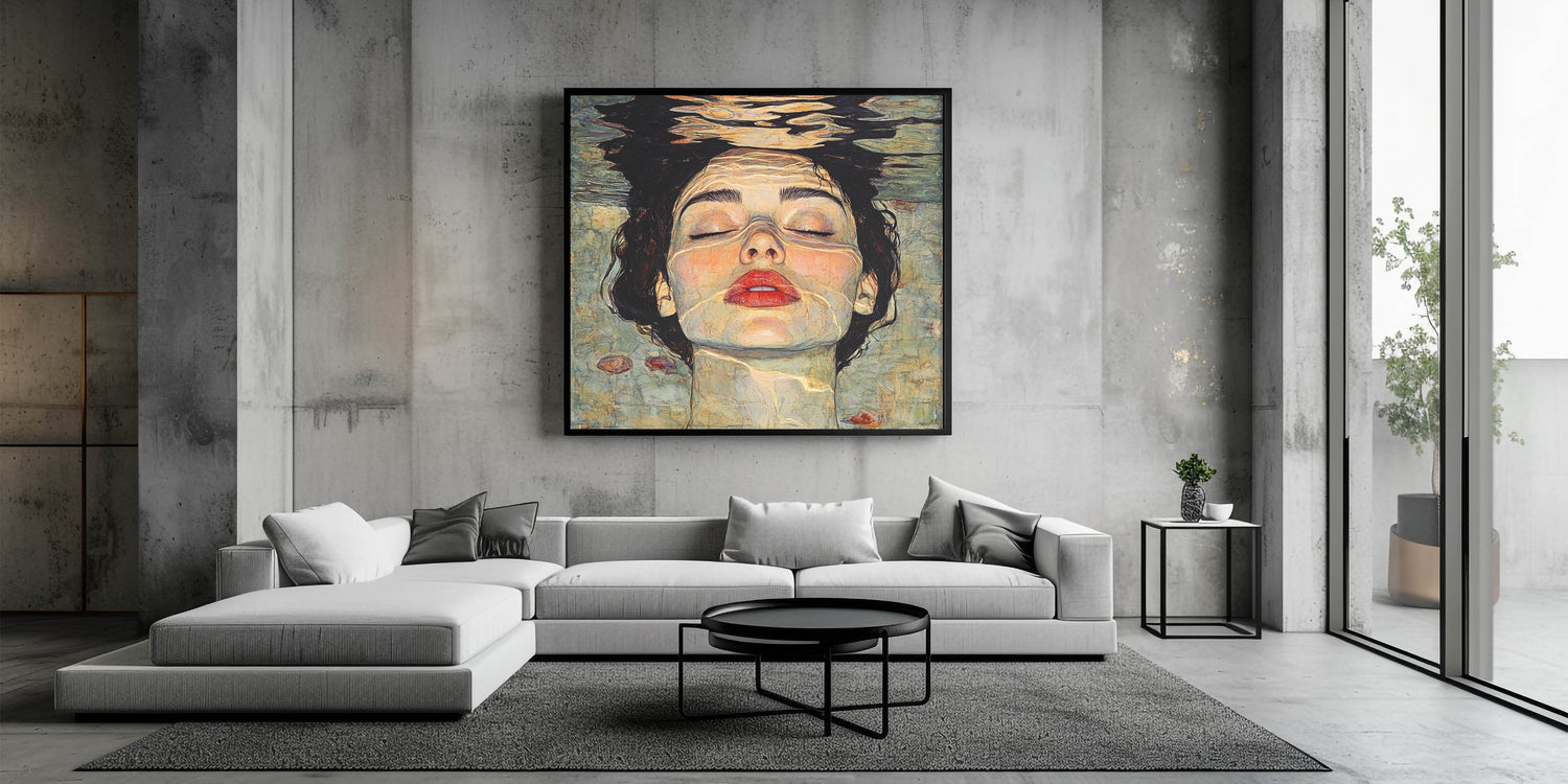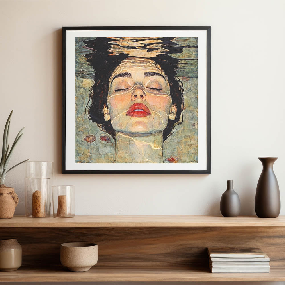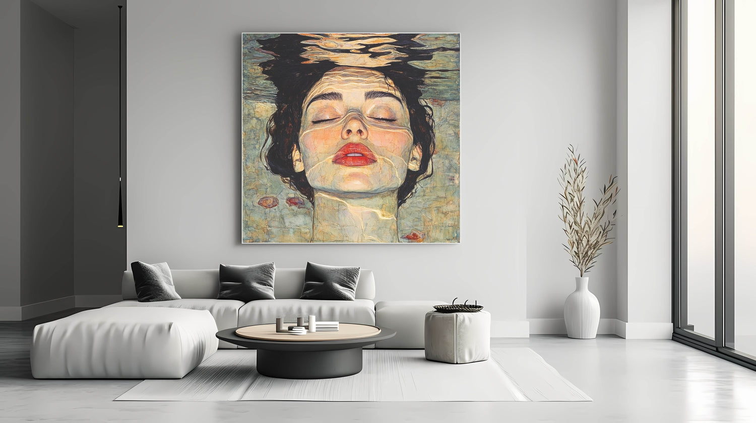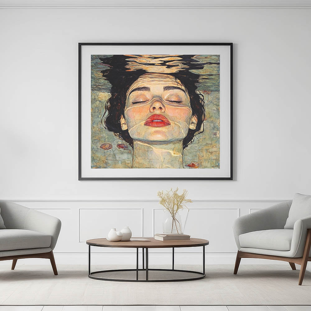 Immerse yourself in the tranquil beauty of this Abstract Figurative Art Collection masterpiece. This unique abstract human form artwork captures a stunning moment of serenity, featuring a woman submerged in water with delicate rippling reflections. The masterful blend of realism and abstraction creates an ethereal, dreamlike aesthetic that evokes peace, introspection, and fluidity.