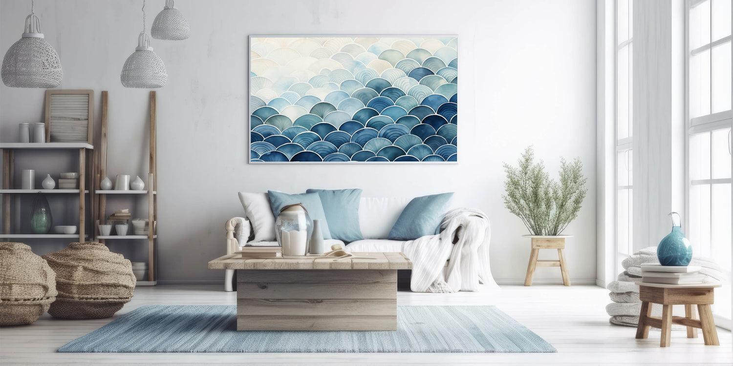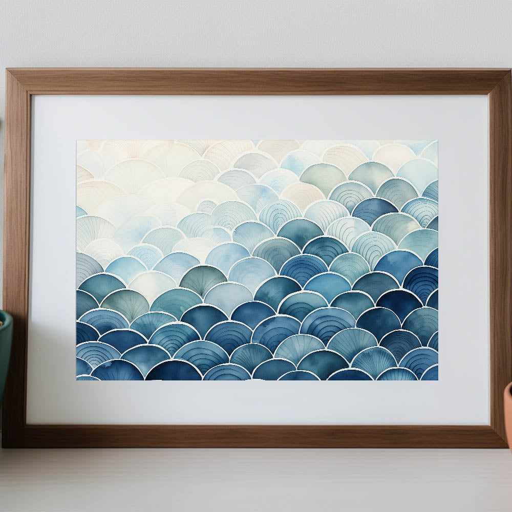 Abstract Coastal Wave Pattern Wall Art – Ocean-Themed Blue Print