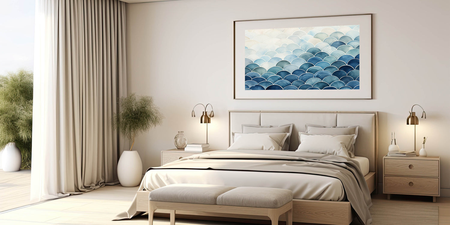 - Adds a modern and calming touch to any space with its ocean-inspired palette