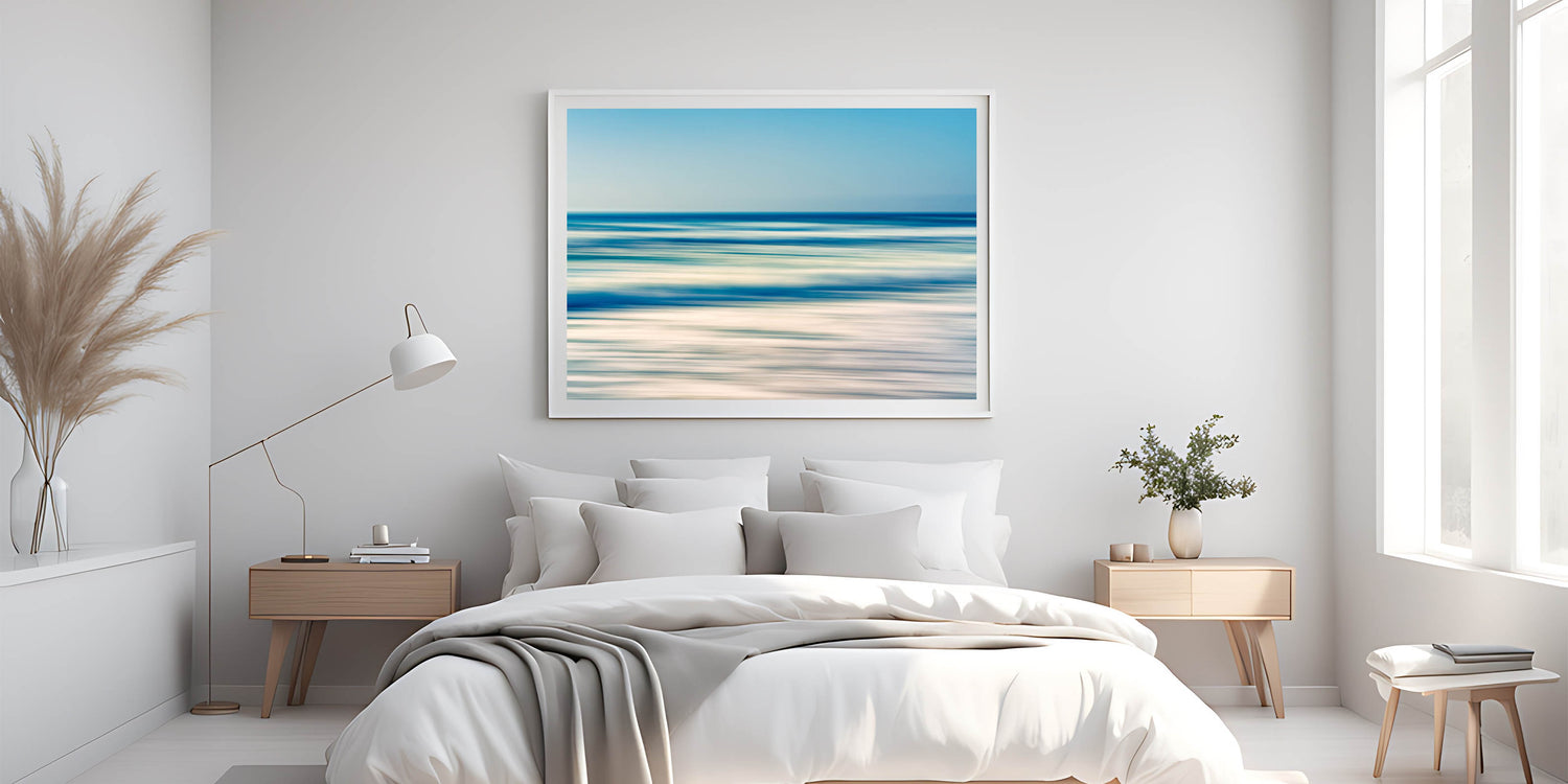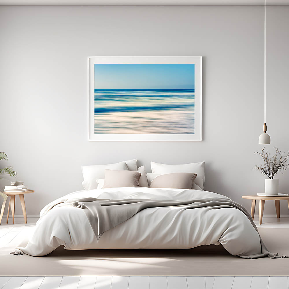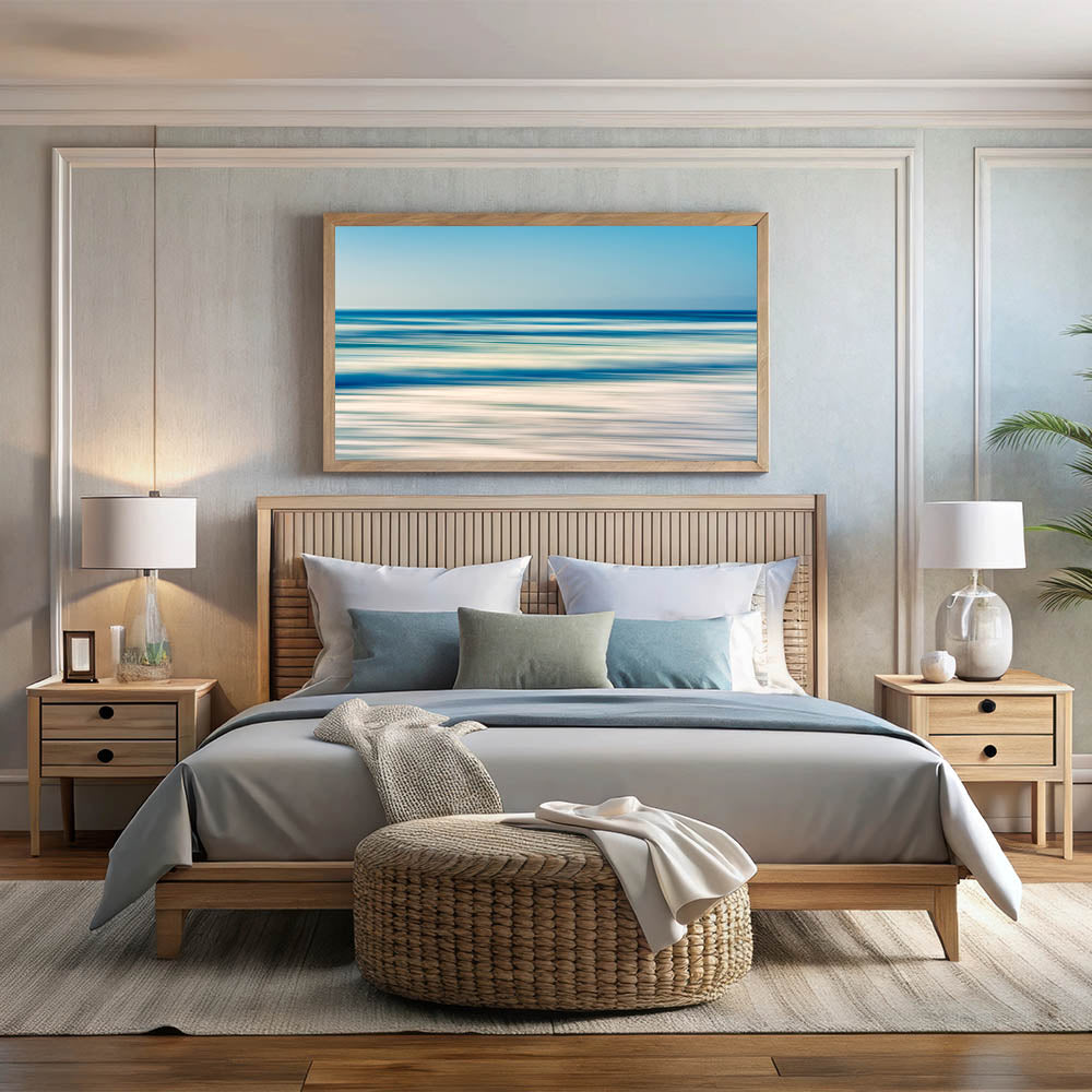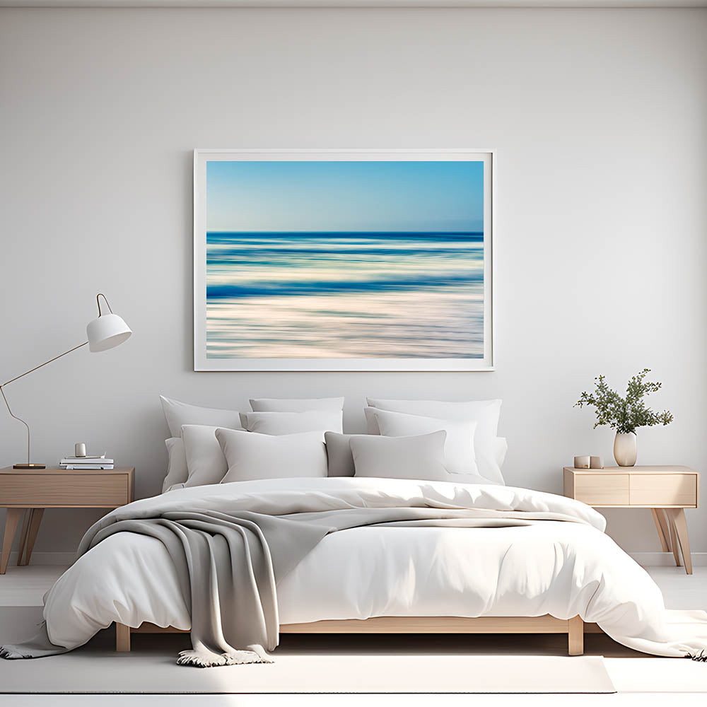 Enhance your space with the calming energy of the ocean with this abstract coastal wall art featuring blurred waves and soothing tones of blue and sand. This minimalist piece captures the essence of a peaceful day at the beach, where the horizon meets the sea in a gentle, blurred motion. Its soft color palette and abstract style make it a perfect addition to modern, contemporary, or beach-themed decor, bringing a sense of serenity to any room.