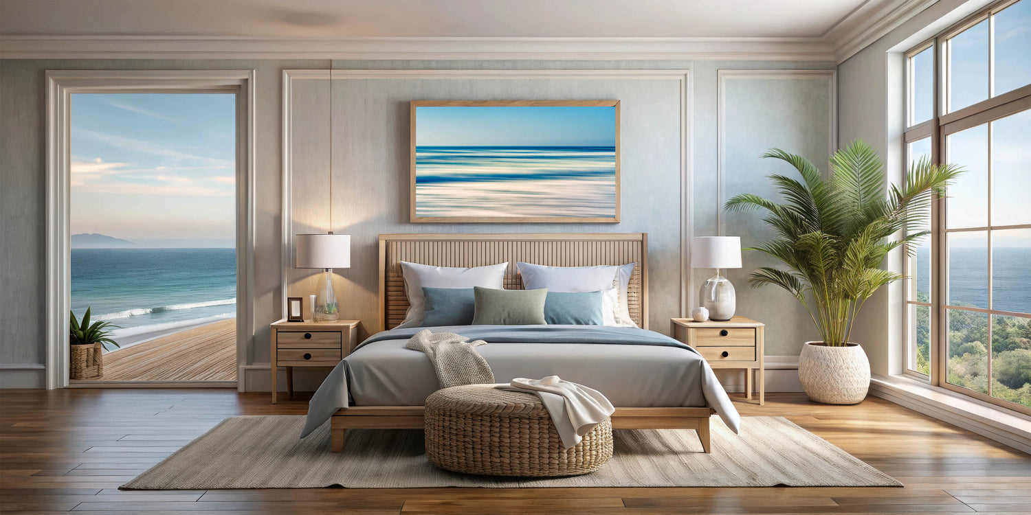 This oceanic wall art is perfect for creating a peaceful retreat in your home. Whether you're decorating a beach house or want to bring a coastal vibe into your living space, this piece captures the calm beauty of the sea in a contemporary and refined way.
