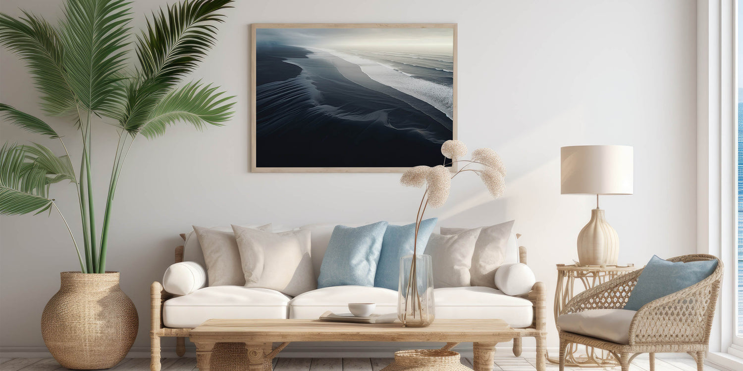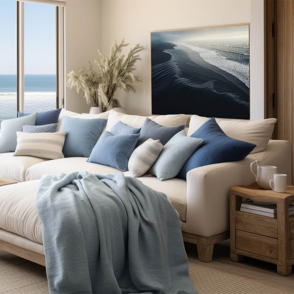 This coastal wall art brings the quiet beauty of the sea into your home, creating a calming yet powerful atmosphere. Perfect for those seeking a more dramatic coastal aesthetic, this piece will transform your space into a peaceful and reflective retreat.