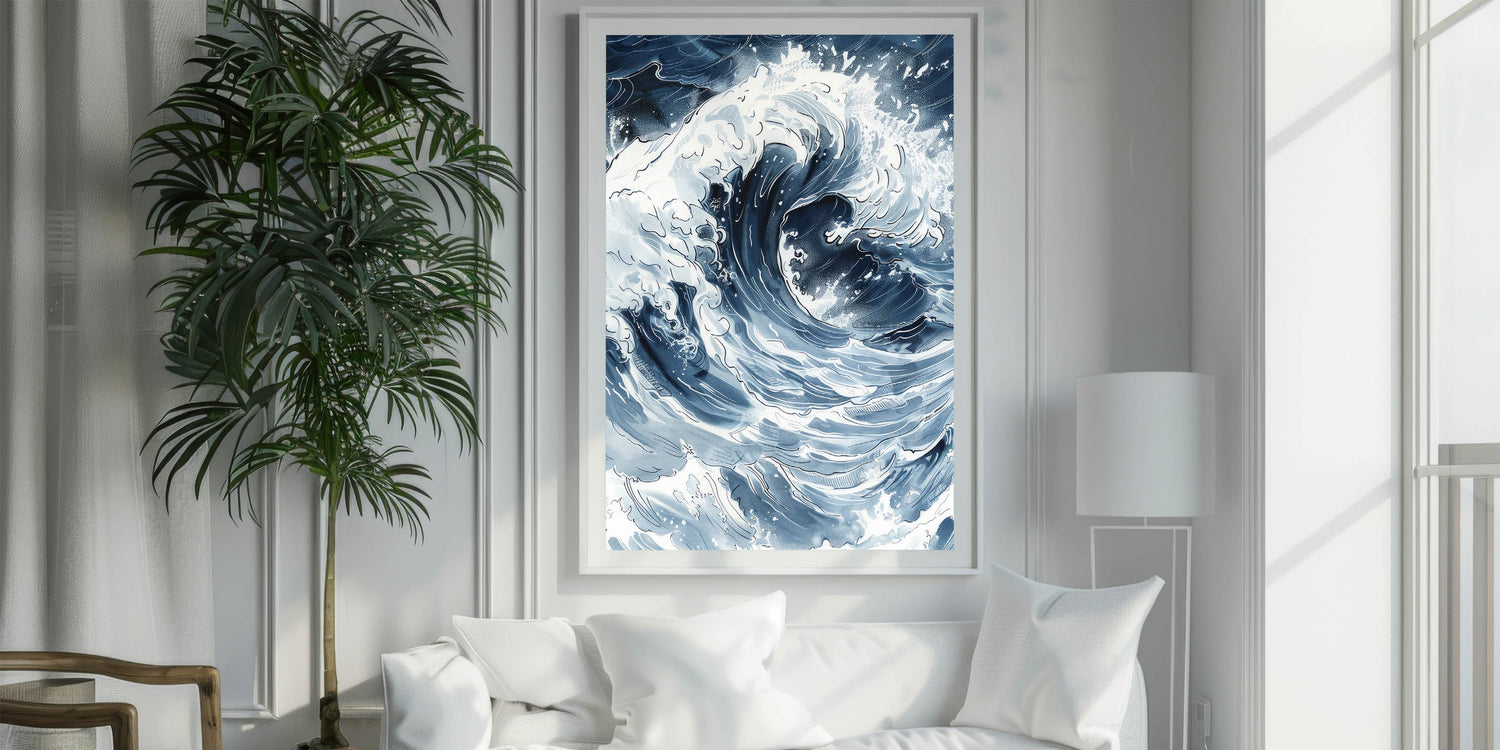 • High-resolution print technology ensures the intricate wave details and vibrant tones are vividly displayed.
