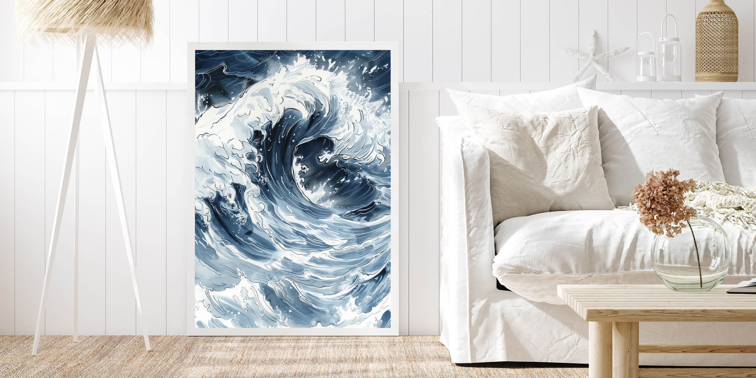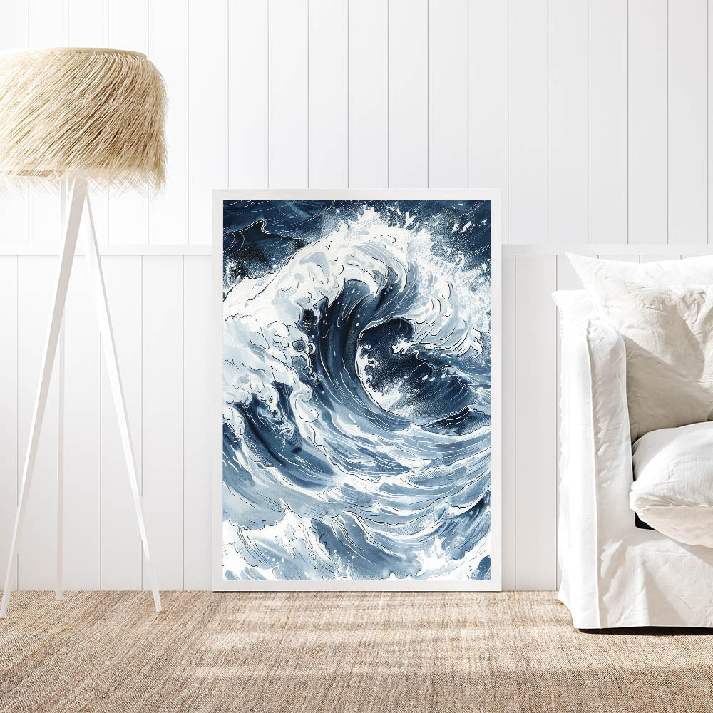 Dynamic Ocean Wave Coastal Wall Art - Nautical Seaside Decor Print