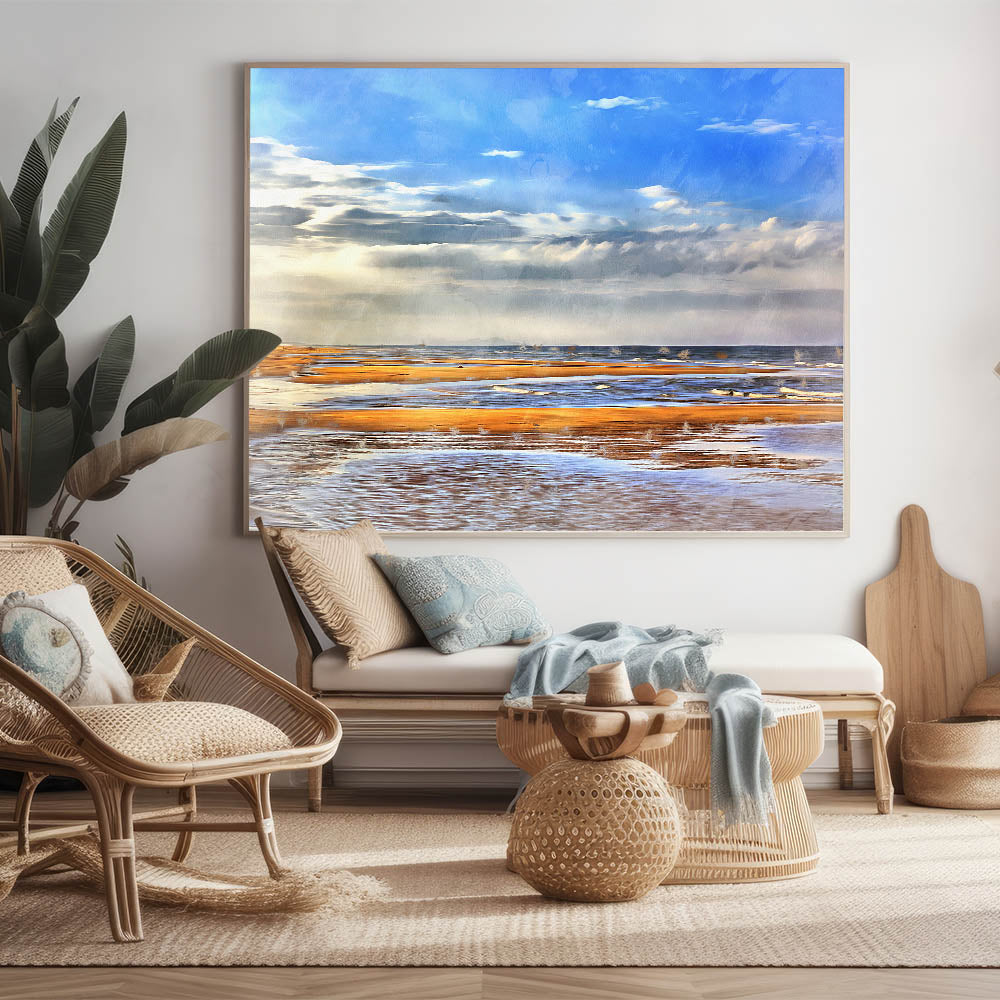 Golden Beach Coastal Wall Art – Vibrant Ocean-Themed Seaside Print