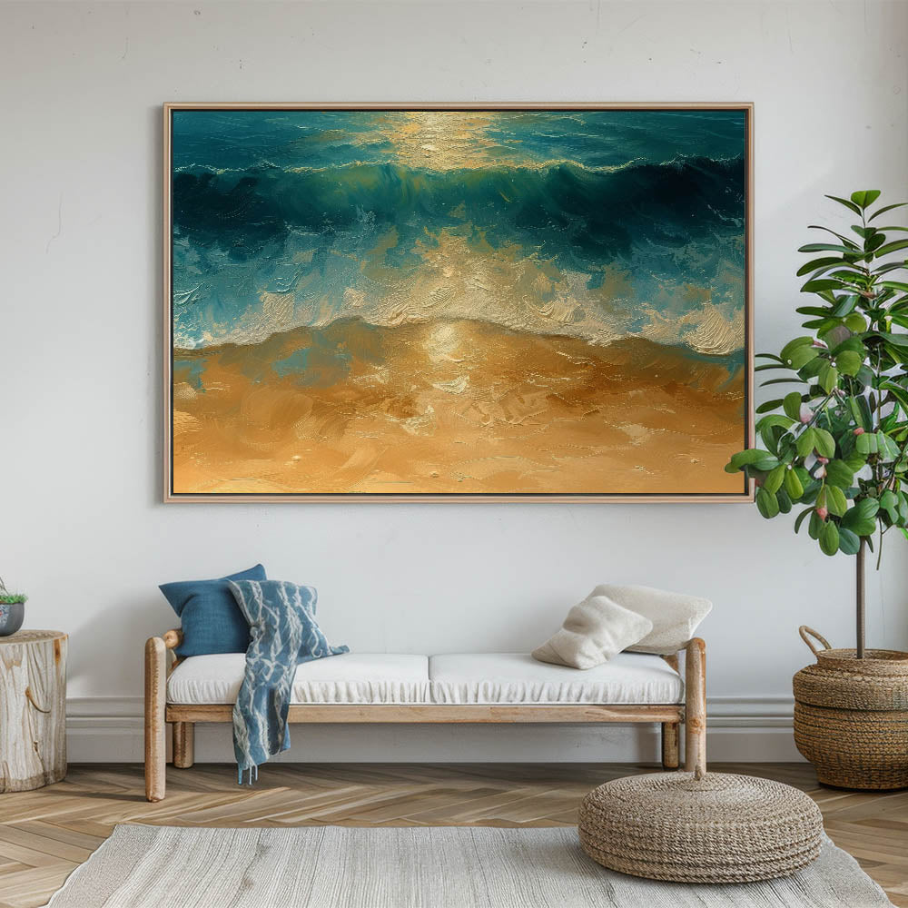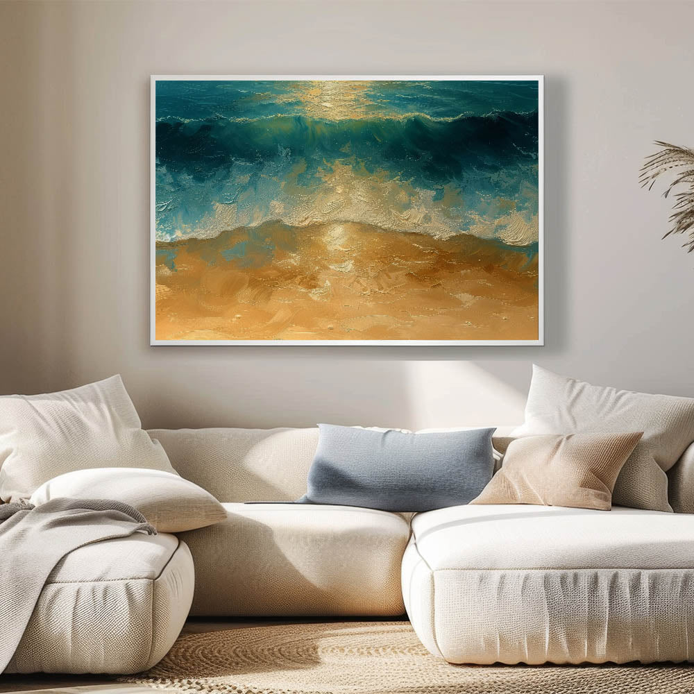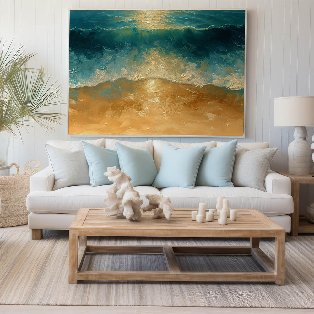 Golden Shore Coastal Wall Art – Ocean Waves Beach-Themed Nautical Print