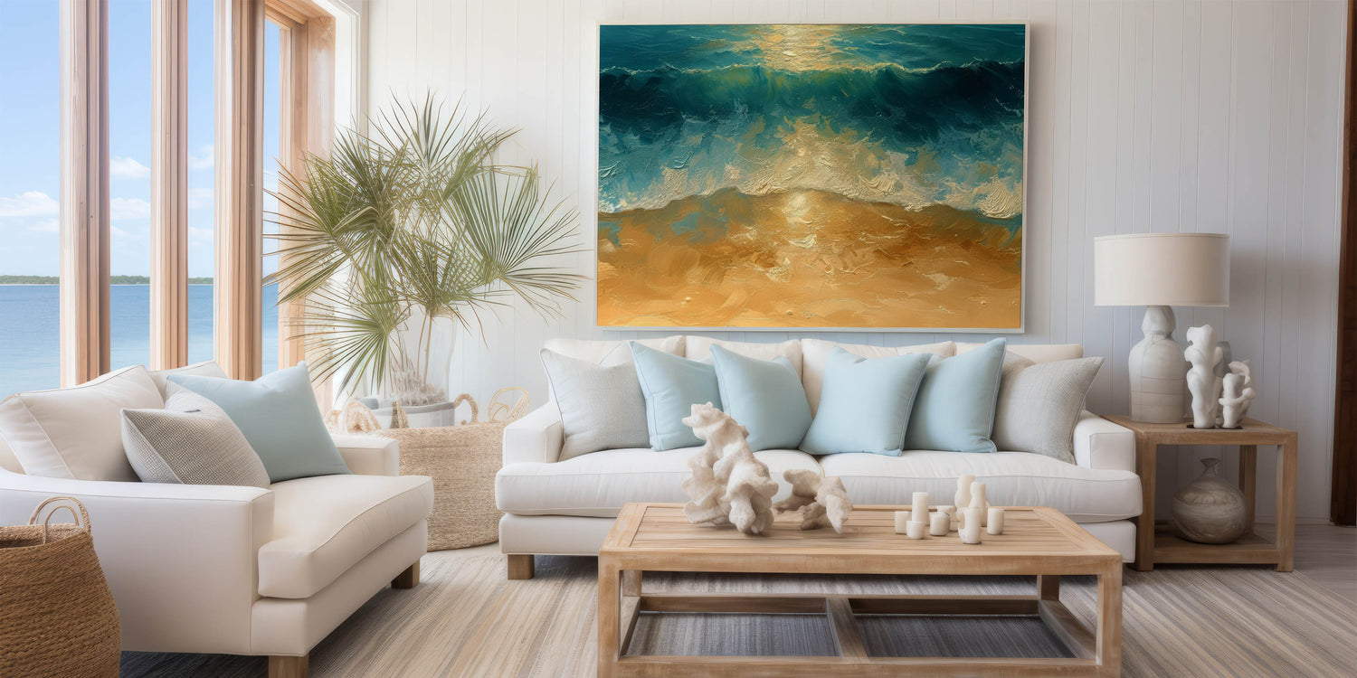This artwork brings the timeless beauty of the shore into your living space, creating a peaceful yet vibrant atmosphere. Whether you're decorating a beach house or adding a coastal vibe to your home, this piece will infuse your space with the energy of the ocean.