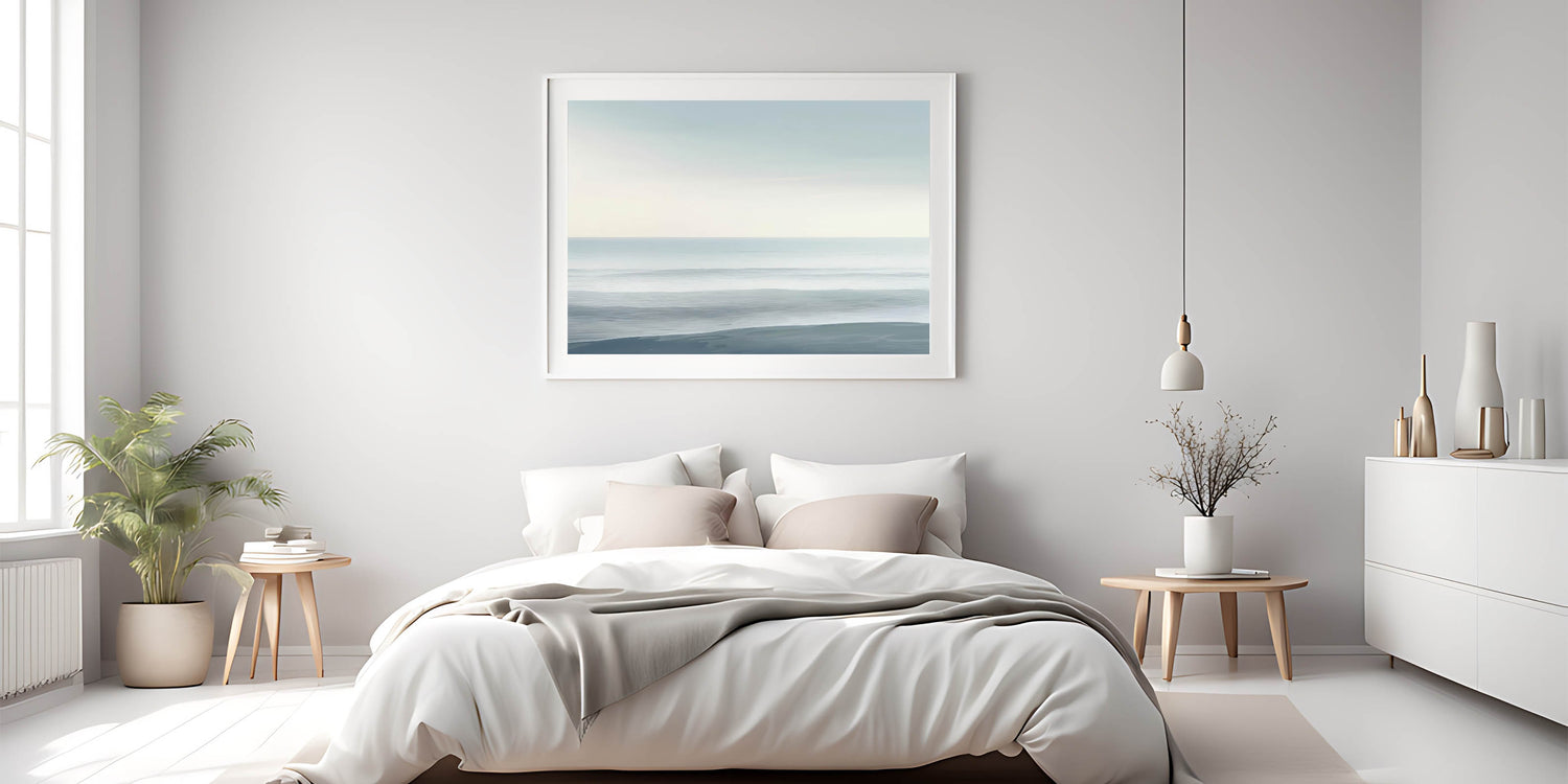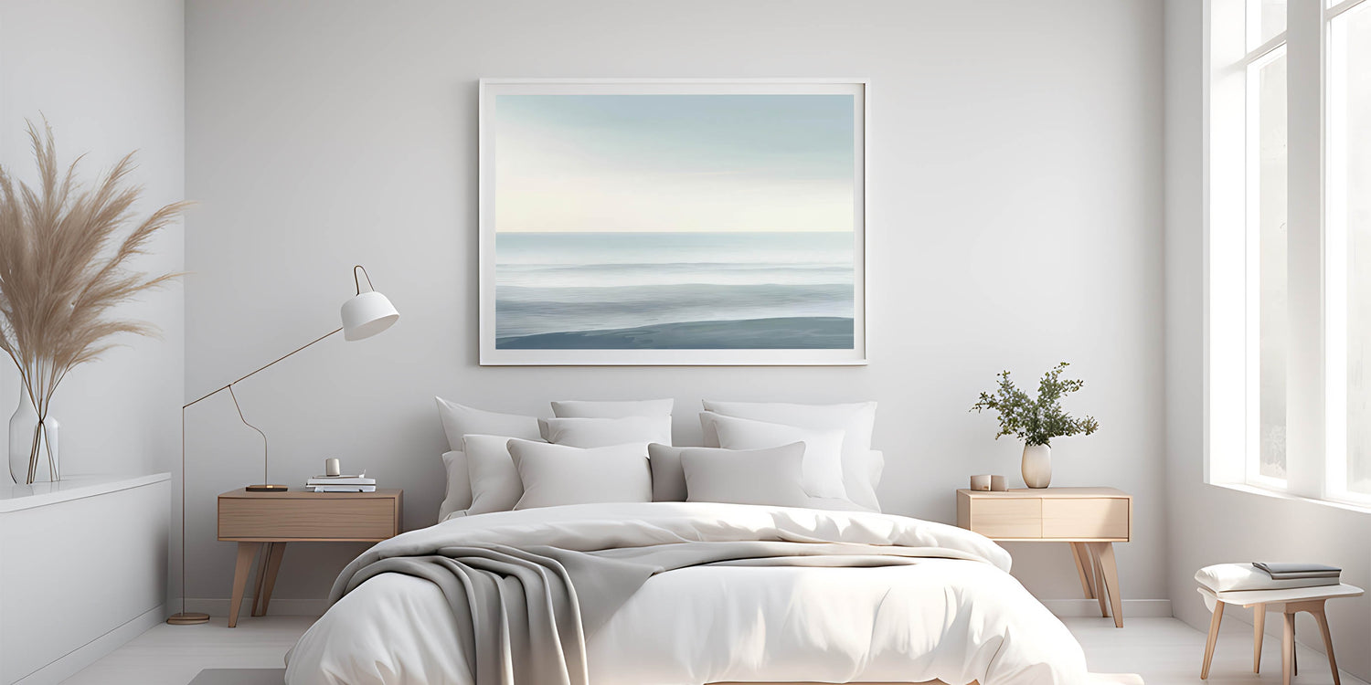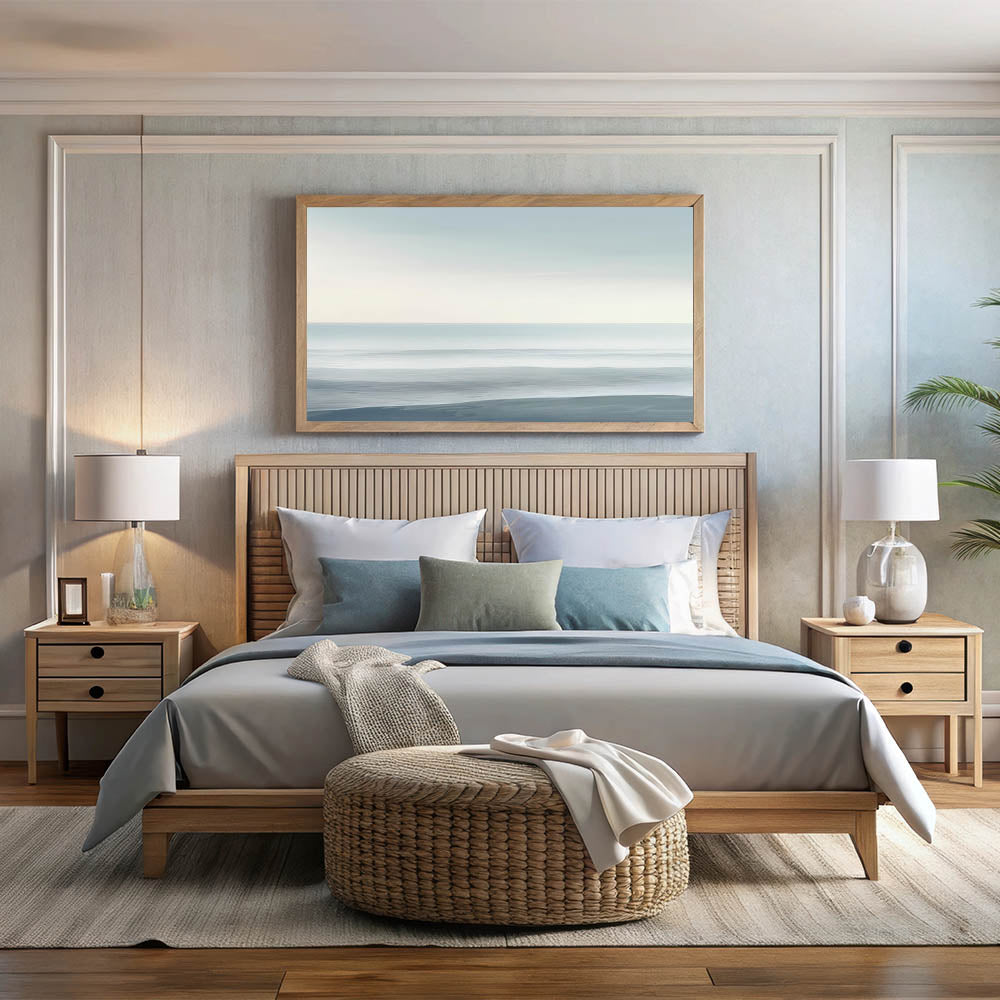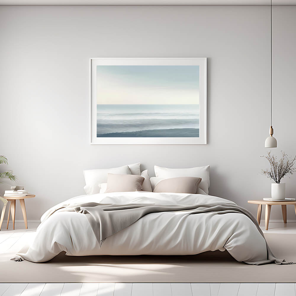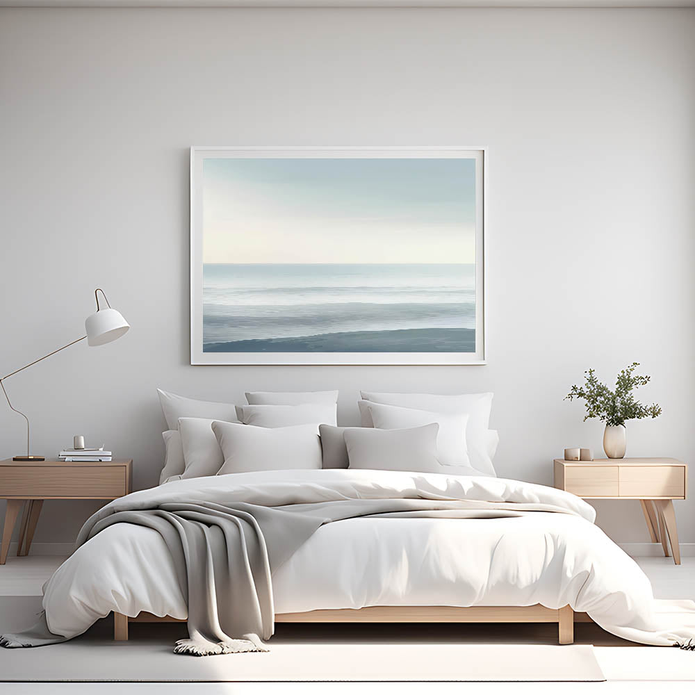 This serene artwork invites a sense of peace and quiet reflection into your home. Whether you're decorating a beach house or looking to create a tranquil retreat at home, this minimalist piece will add a calming influence to your living space.