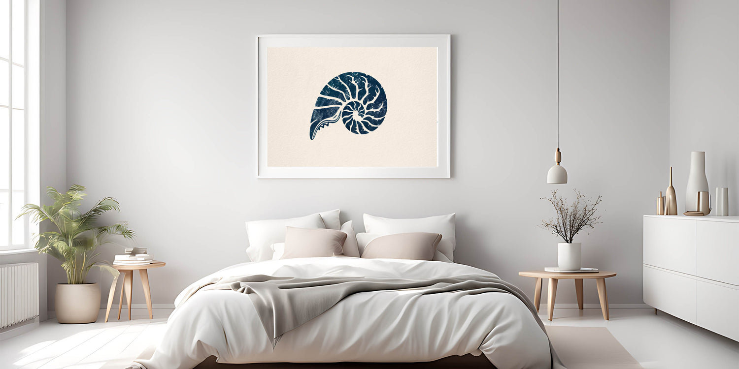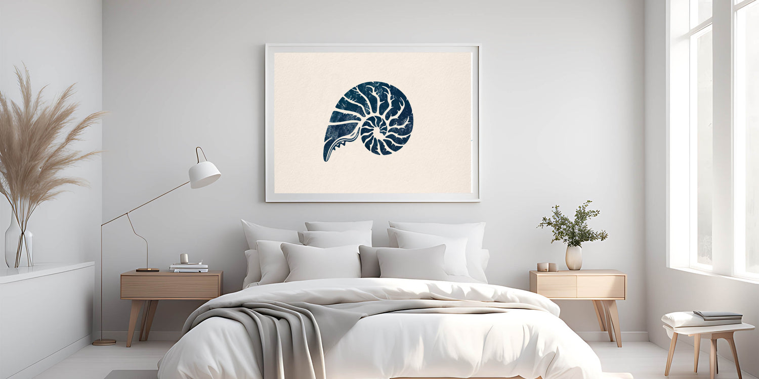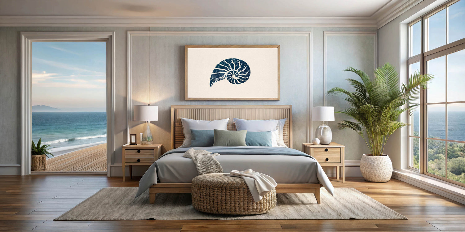 Nautilus Shell Coastal Wall Art – Nautical Beach-Themed Seaside Print