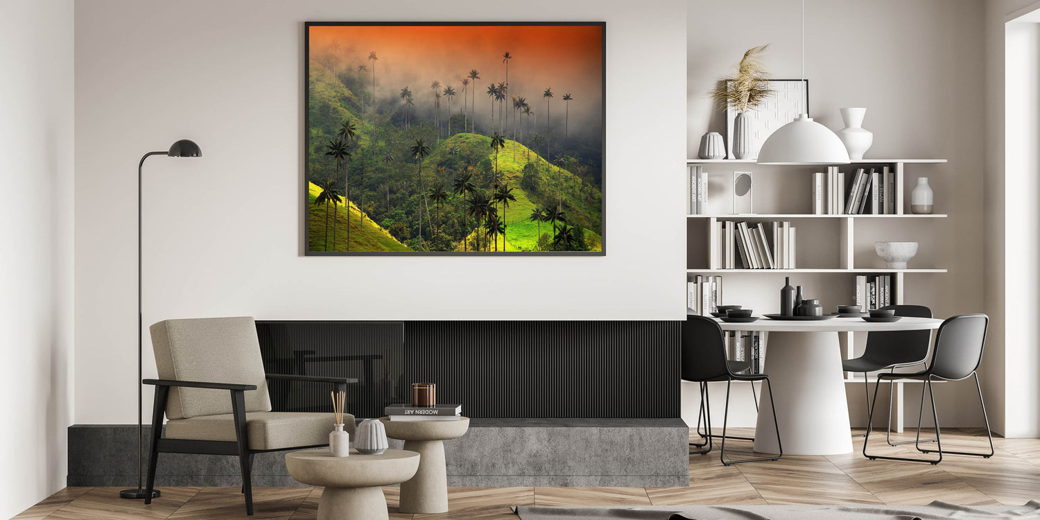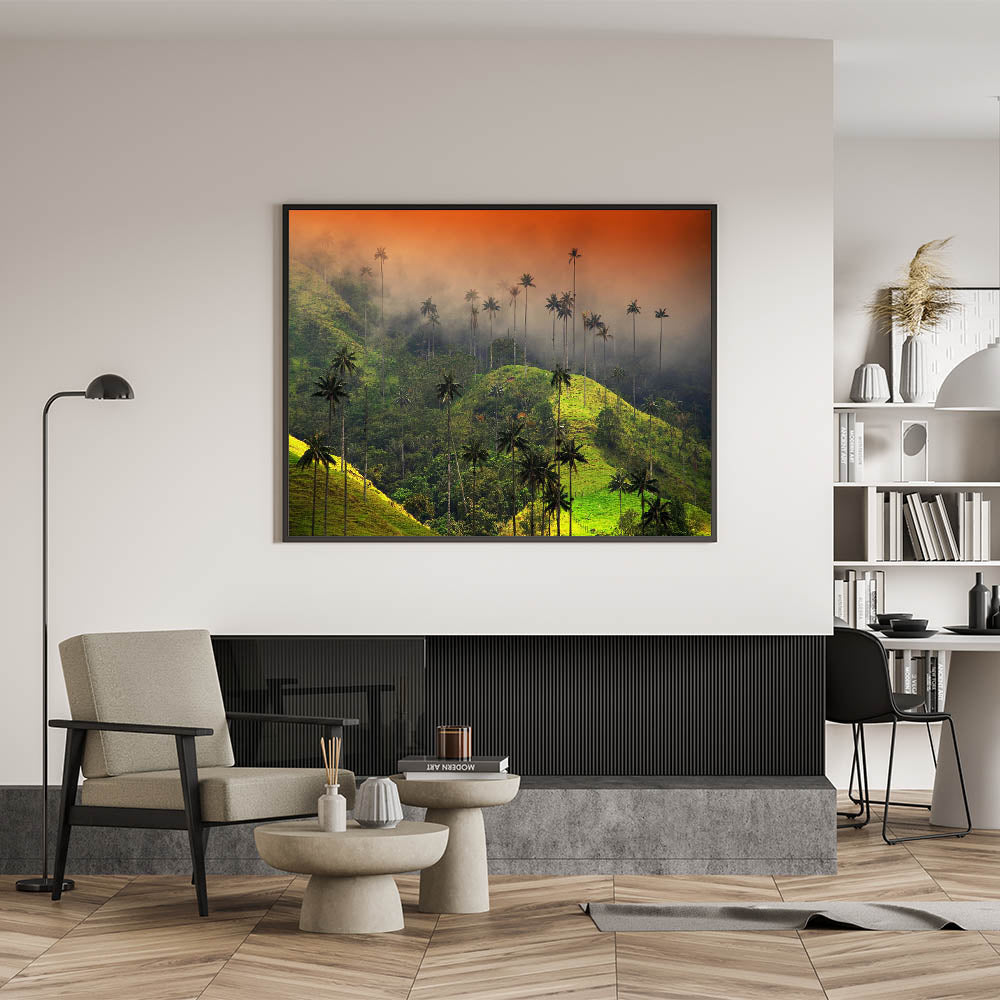 Transform your space with the awe-inspiring beauty of Colombia’s misty Cocora Valley. This captivating Colombia photography art print will elevate any interior with its peaceful, yet striking natural landscape.