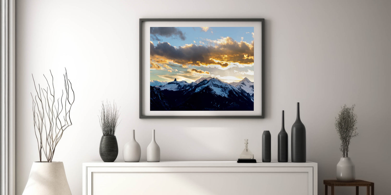 Bring the serenity and beauty of a Telluride sunset into your home with this striking landscape photography print. With several framing and display options, this Telluride photography art is ideal for any nature lover looking to elevate their space with the majesty of the Rocky Mountains.