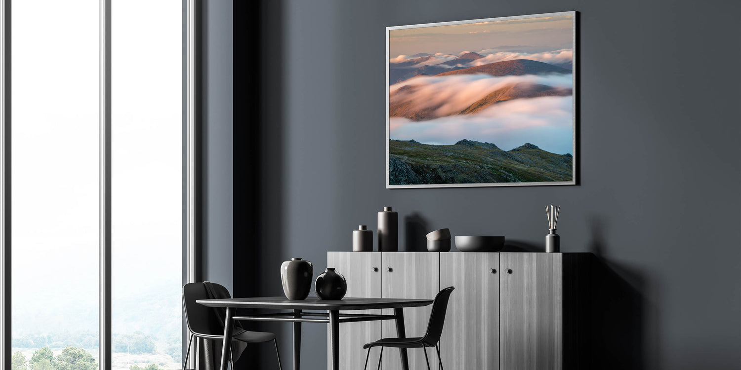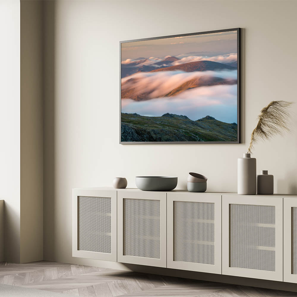 • Vail’s Majestic Landscape: The soft clouds gently resting on mountain peaks create a calming effect, perfect for bedrooms, living rooms, or offices.