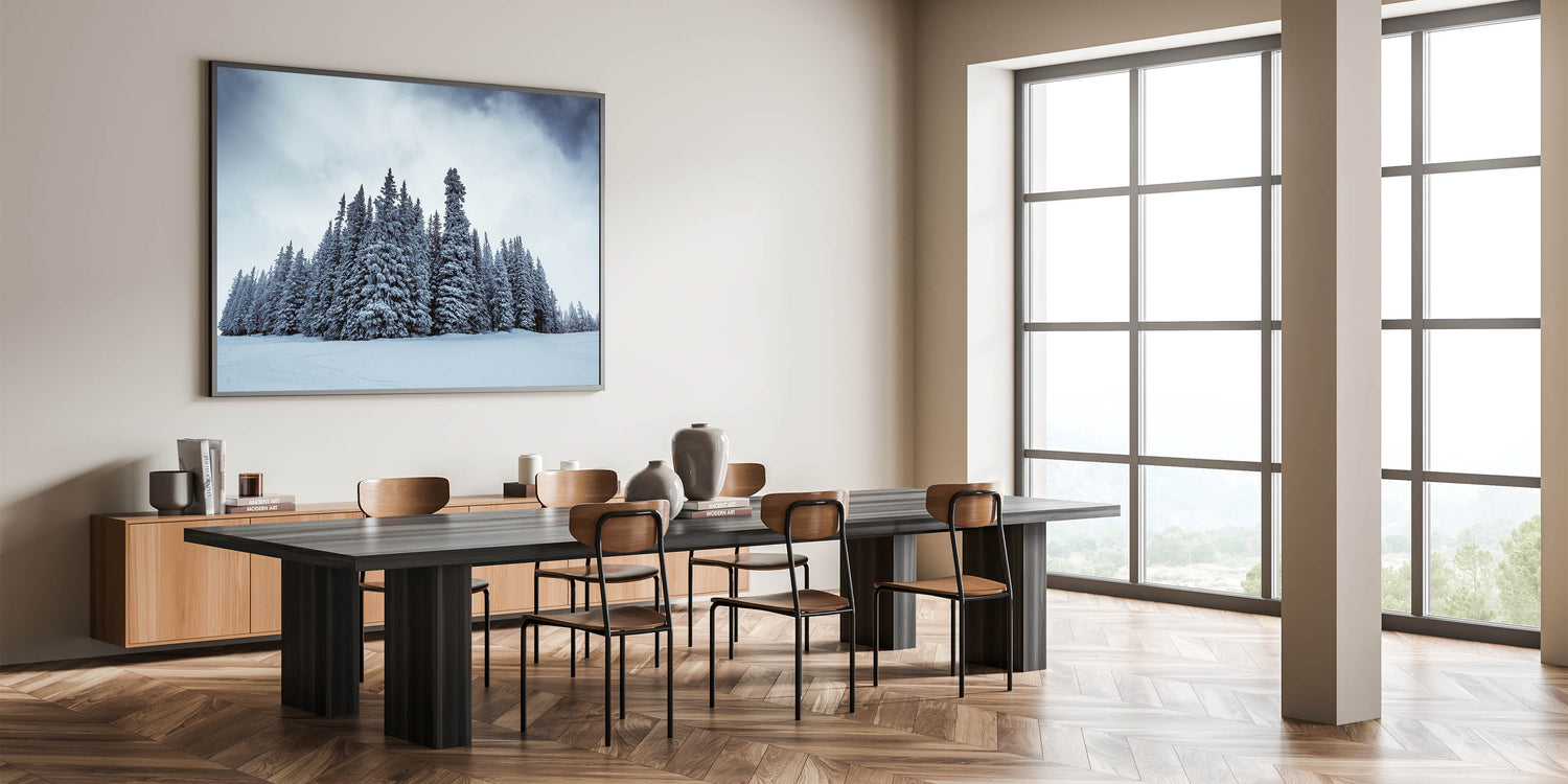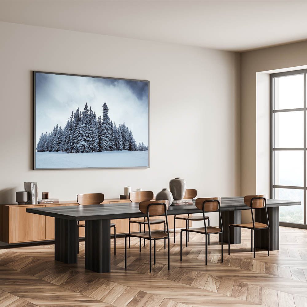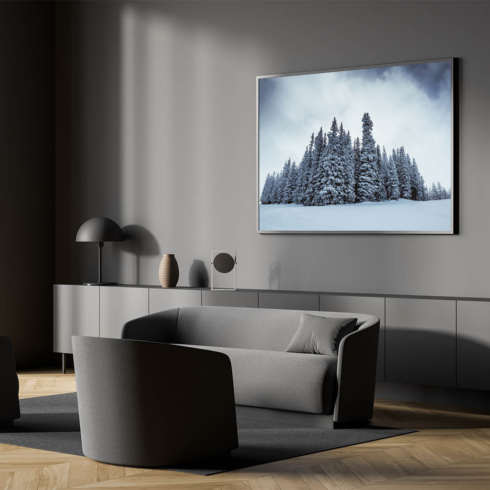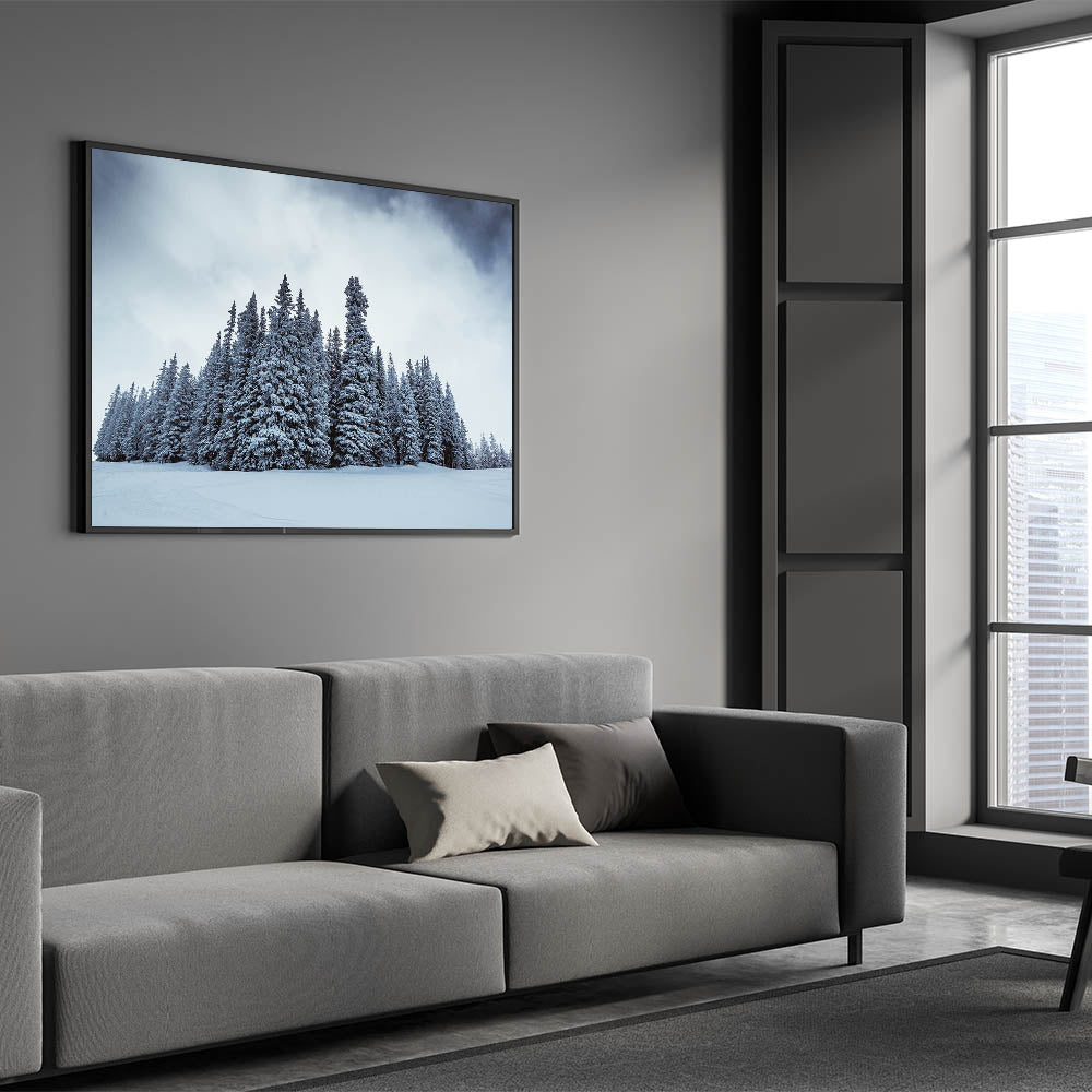 - Serene Winter Scene: Snow-covered pine trees create a peaceful and calming environment, ideal for any room in need of a tranquil touch.