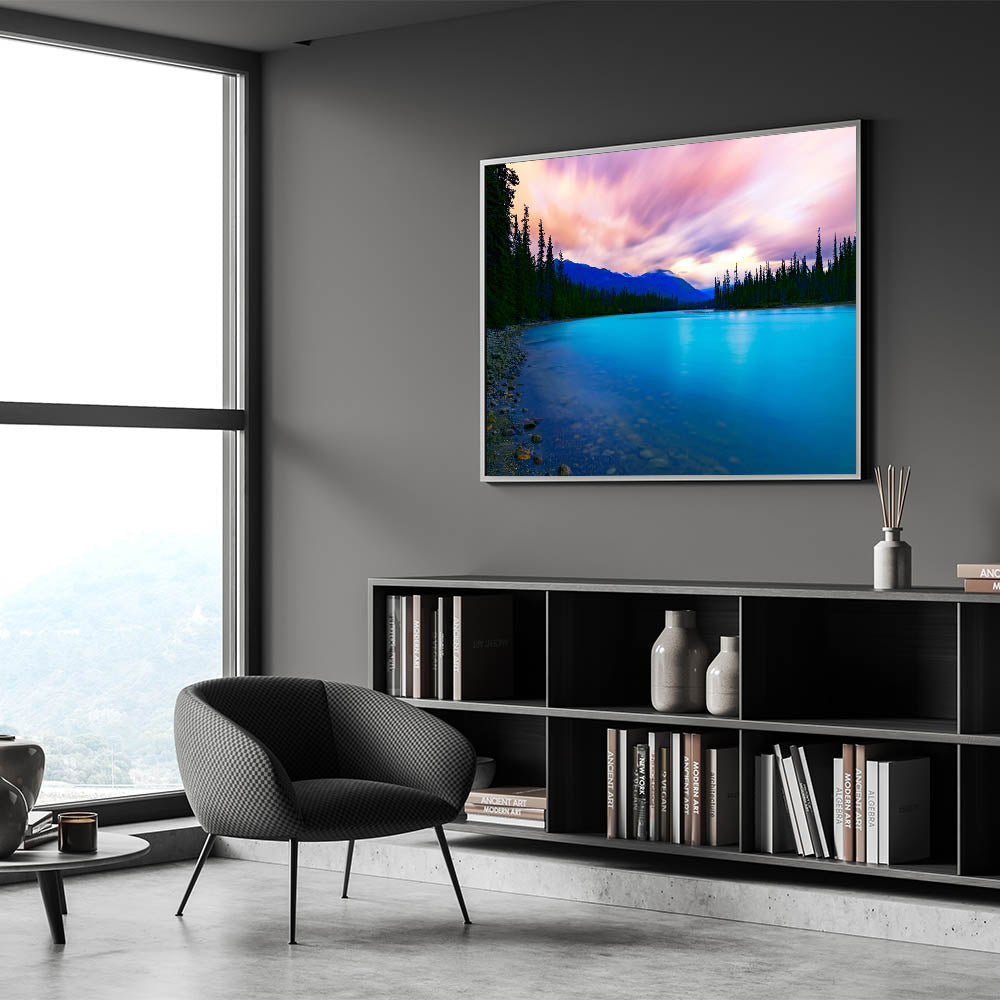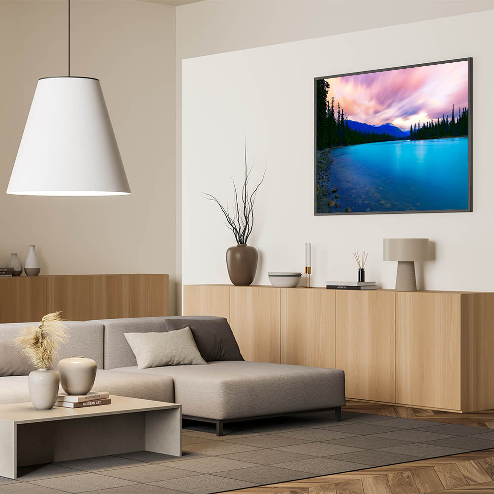 • High-Quality Print: High-definition printing ensures the vibrant colors and details of this twilight lakeside scene are preserved for lasting beauty.