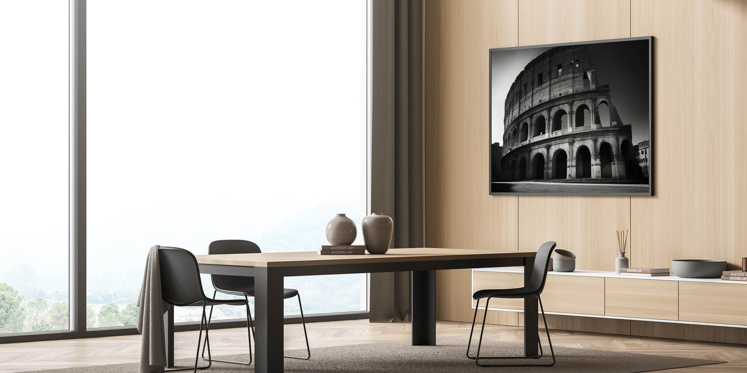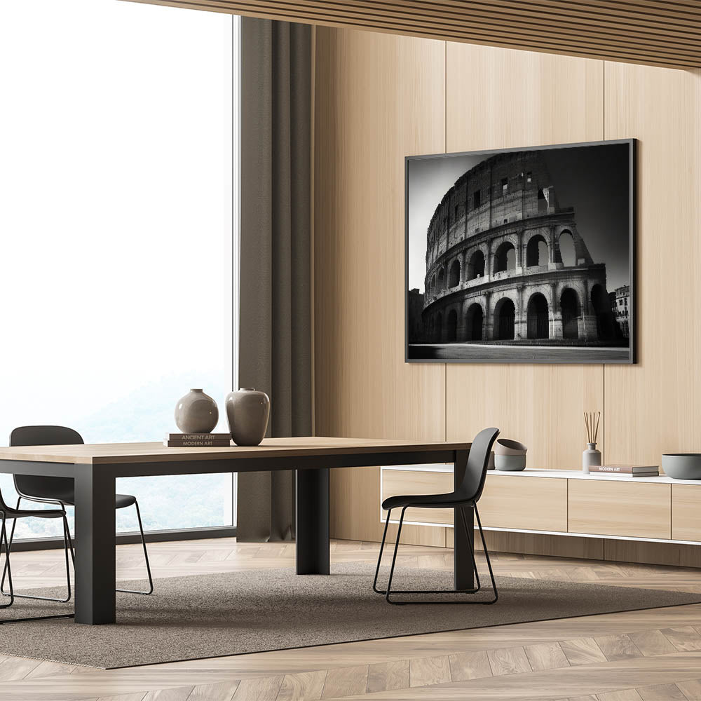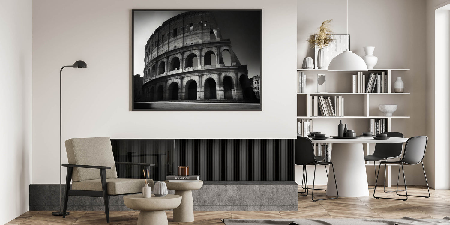This Roman Colosseum canvas brings a timeless architectural wonder into your home, perfect for those who appreciate the elegance of black and white photography.