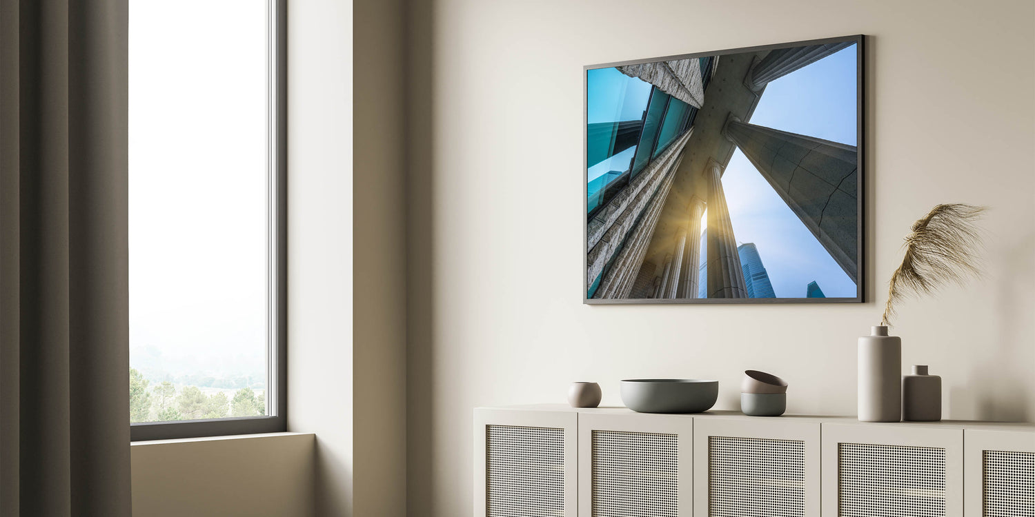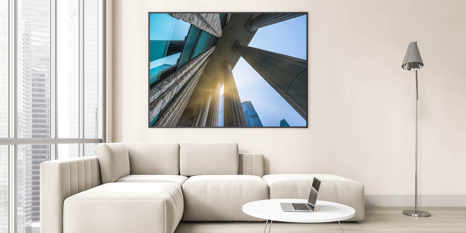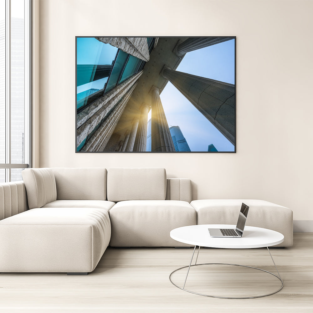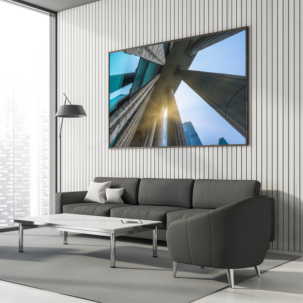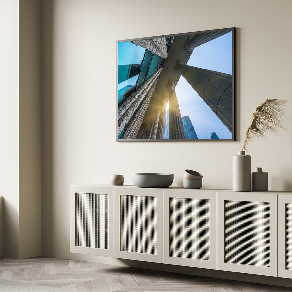 Elevate your space with this stunning Classical Columns Wall Art, featuring an awe-inspiring perspective of architectural columns reaching towards the sky. This captivating artwork captures the grandeur of classical architecture, blending modern and historical elements seamlessly. Perfect for lovers of architecture and history, this piece adds sophistication and elegance to any room.