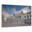 This elegant Connecticut art print captures the grandeur of a historic courthouse building, showcasing its classical columns and intricate architectural details. The imposing structure, set against a sky dotted with soft clouds, reflects the timeless beauty of traditional design. The stairs leading up to the grand entrance invite the viewer to appreciate the craftsmanship of this iconic building, making it a perfect piece for architecture lovers and history enthusiasts.