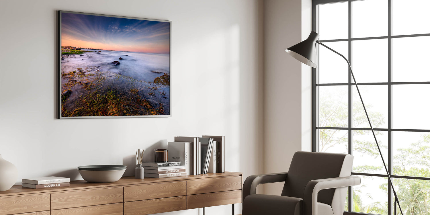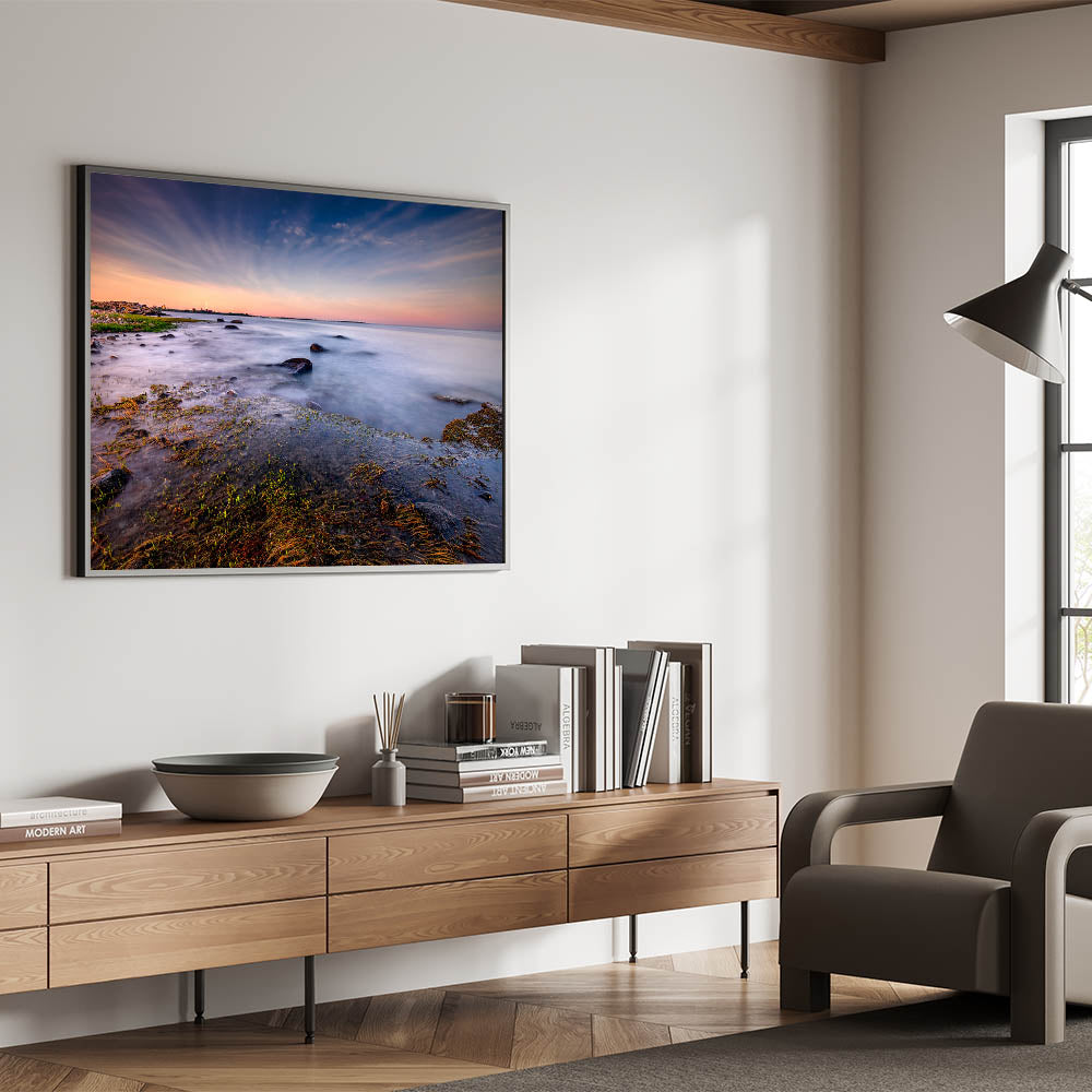 Bring the tranquil beauty of Connecticut’s coastline into your space with this stunning sunrise photograph. This Connecticut landscape art captures the soft hues of dawn as the sun rises over the calm waters, creating a peaceful and meditative atmosphere. Perfect for nature lovers, this coastal photography adds a touch of serenity to any room, making it ideal for homes, offices, or relaxation spaces.