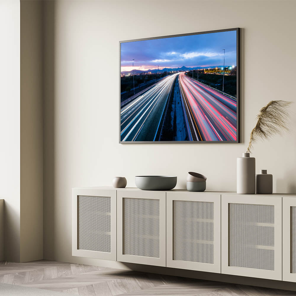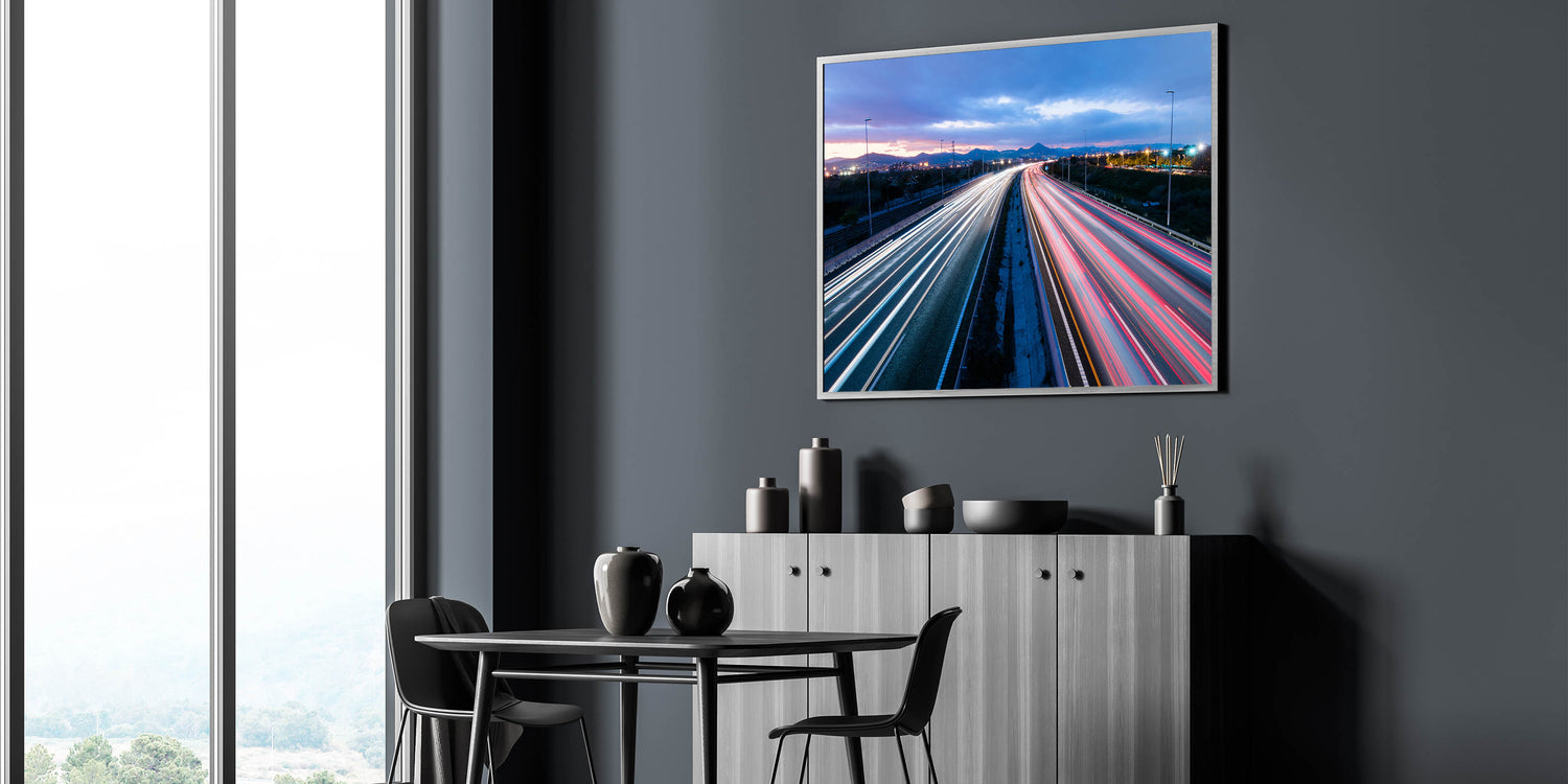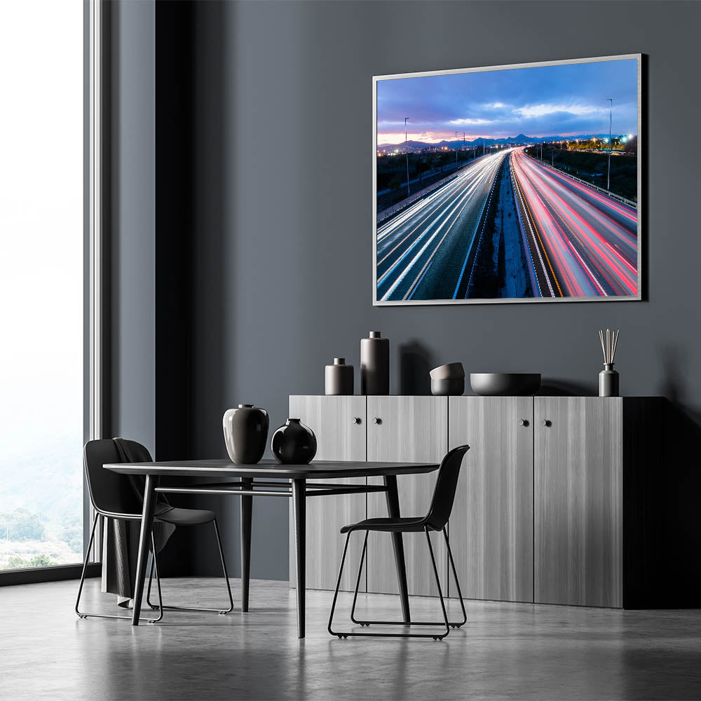 This unique piece of Connecticut landscape art brings a sense of energy and movement to any space. Whether you’re seeking Connecticut art for home or a distinctive gift, this light trail photography will add a bold, contemporary touch to your decor.