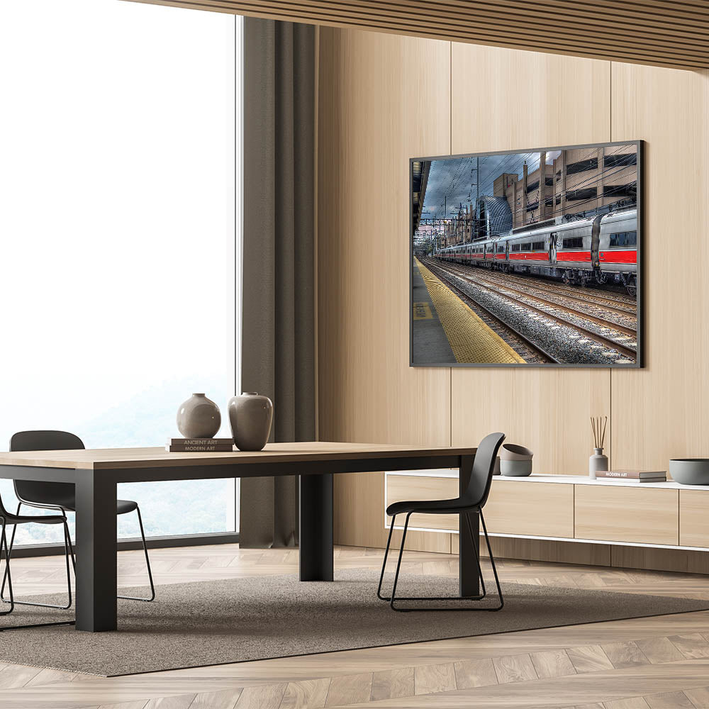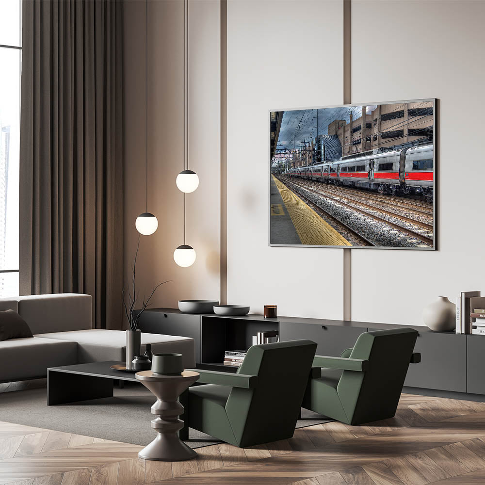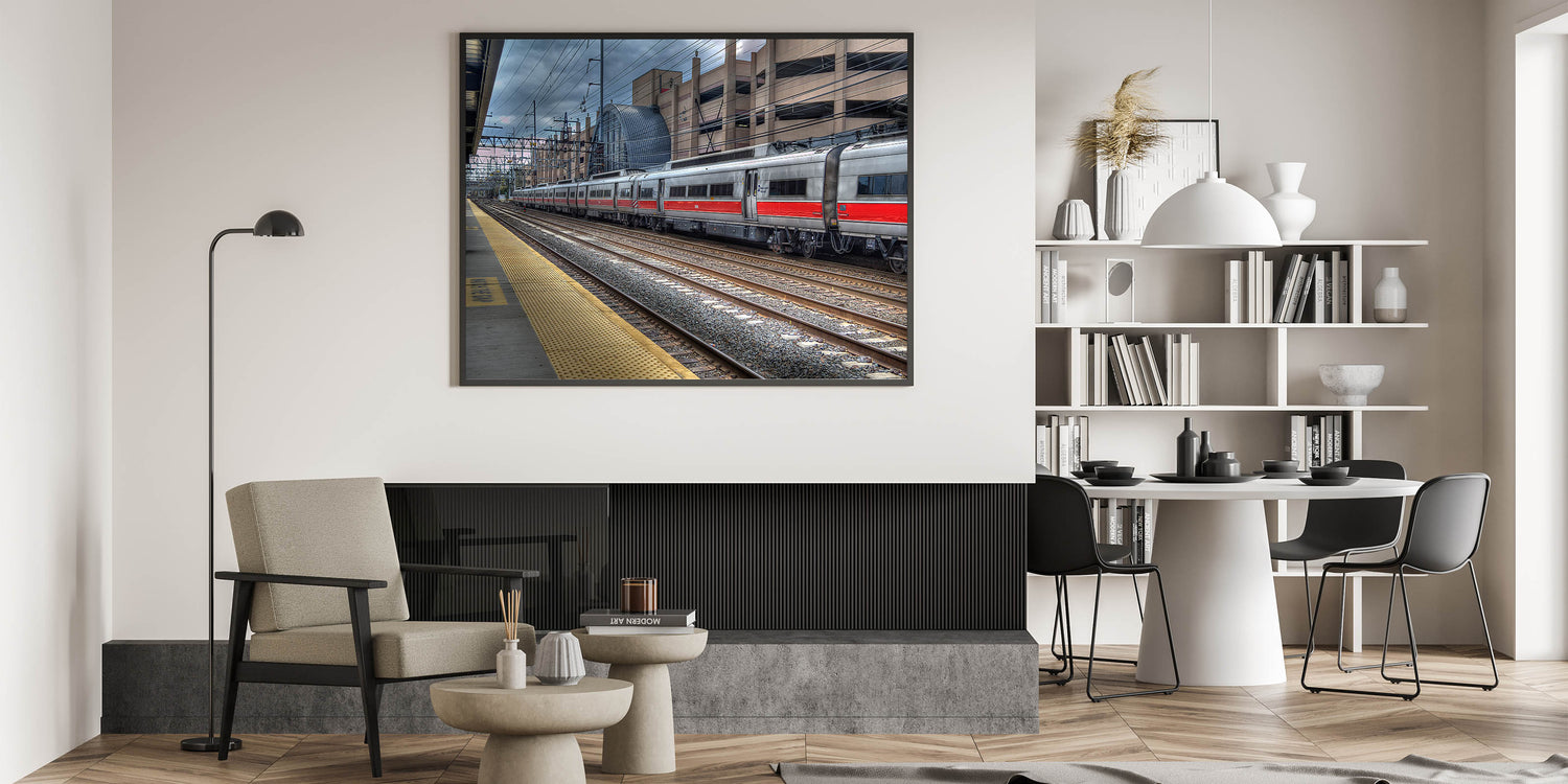 Capture the energy and movement of everyday life with this stunning piece of Connecticut wall decor. This striking photograph showcases the beauty of a train station, with its modern architecture, industrial design, and sleek train cars creating a powerful sense of depth and perspective. A perfect reflection of Connecticut's fast-paced lifestyle, this artwork is ideal for adding a dynamic touch to any room.