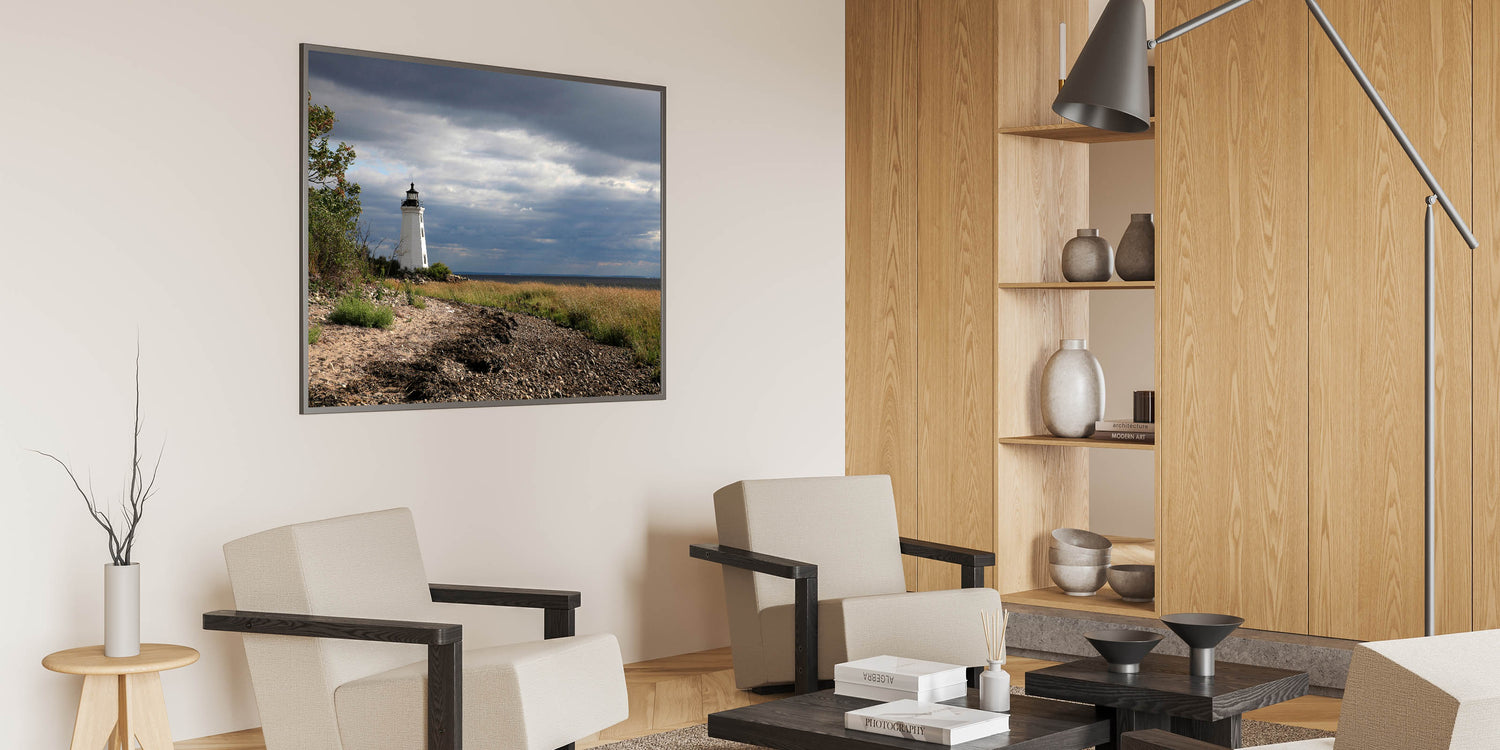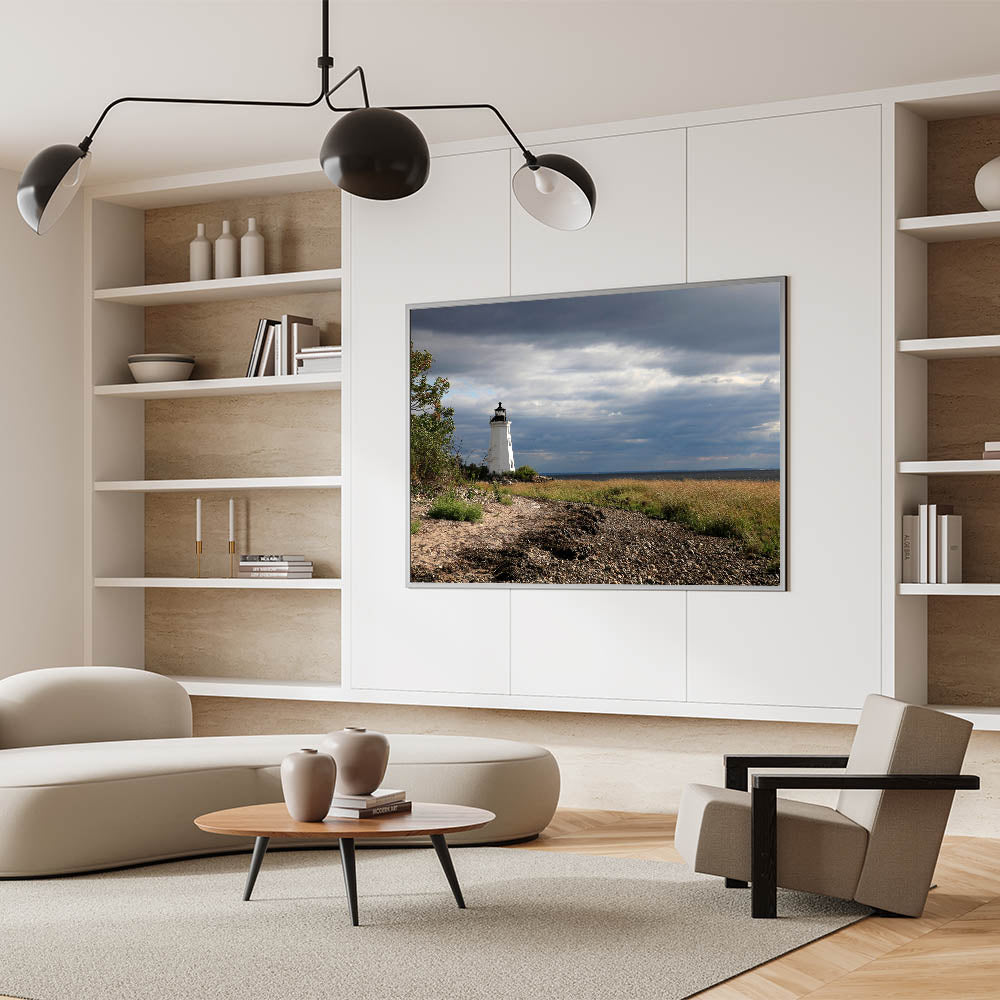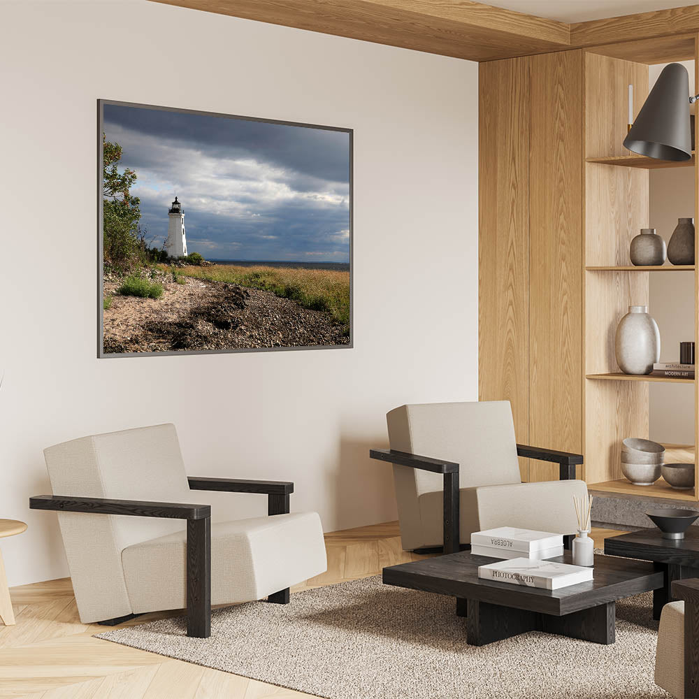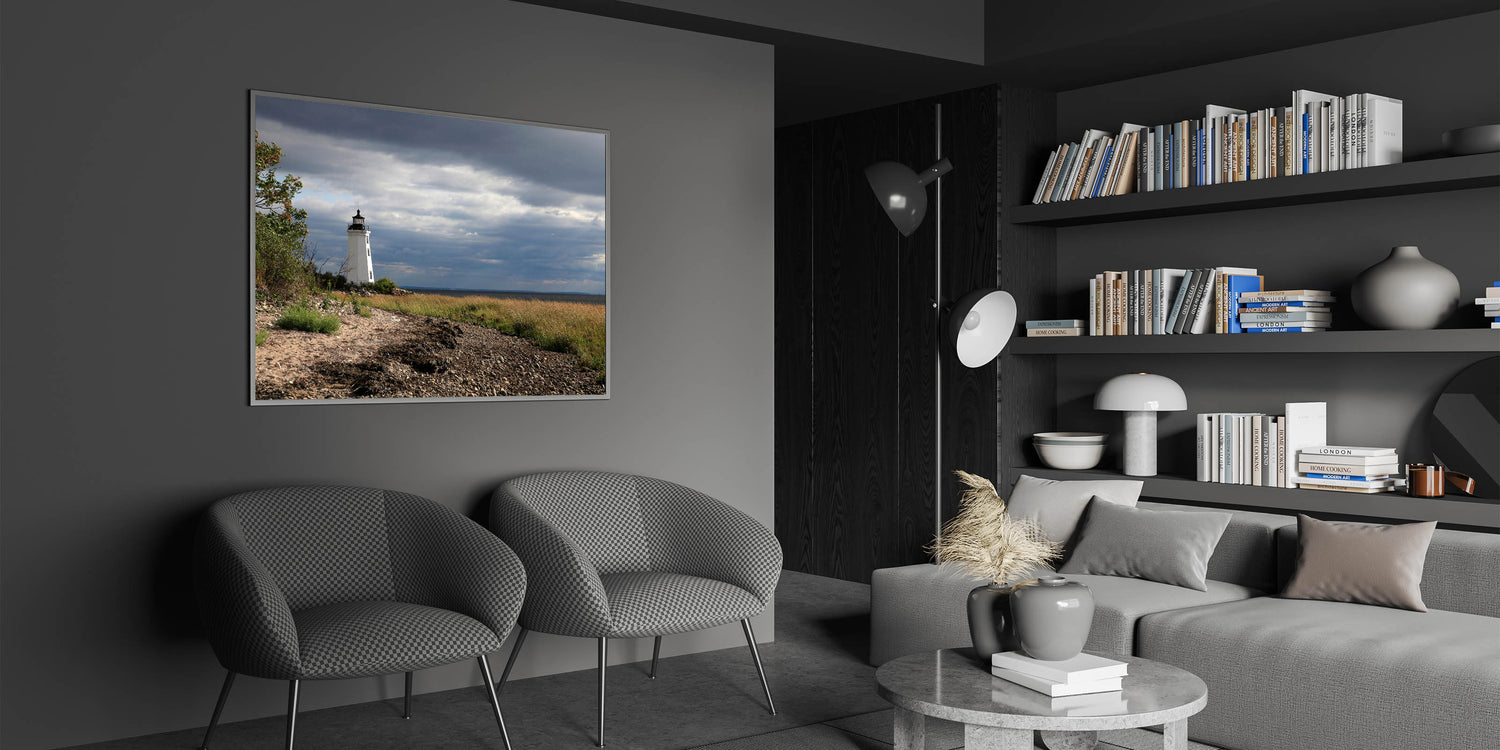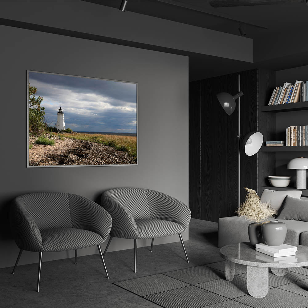 Bring the dramatic beauty of Connecticut’s coastline into your home with this stunning lighthouse photograph. Captured against a backdrop of stormy skies and rugged shorelines, this Connecticut wall art evokes a sense of both calm and strength. Perfect for those who appreciate coastal scenery and the quiet power of nature, this print will make a captivating addition to any space.