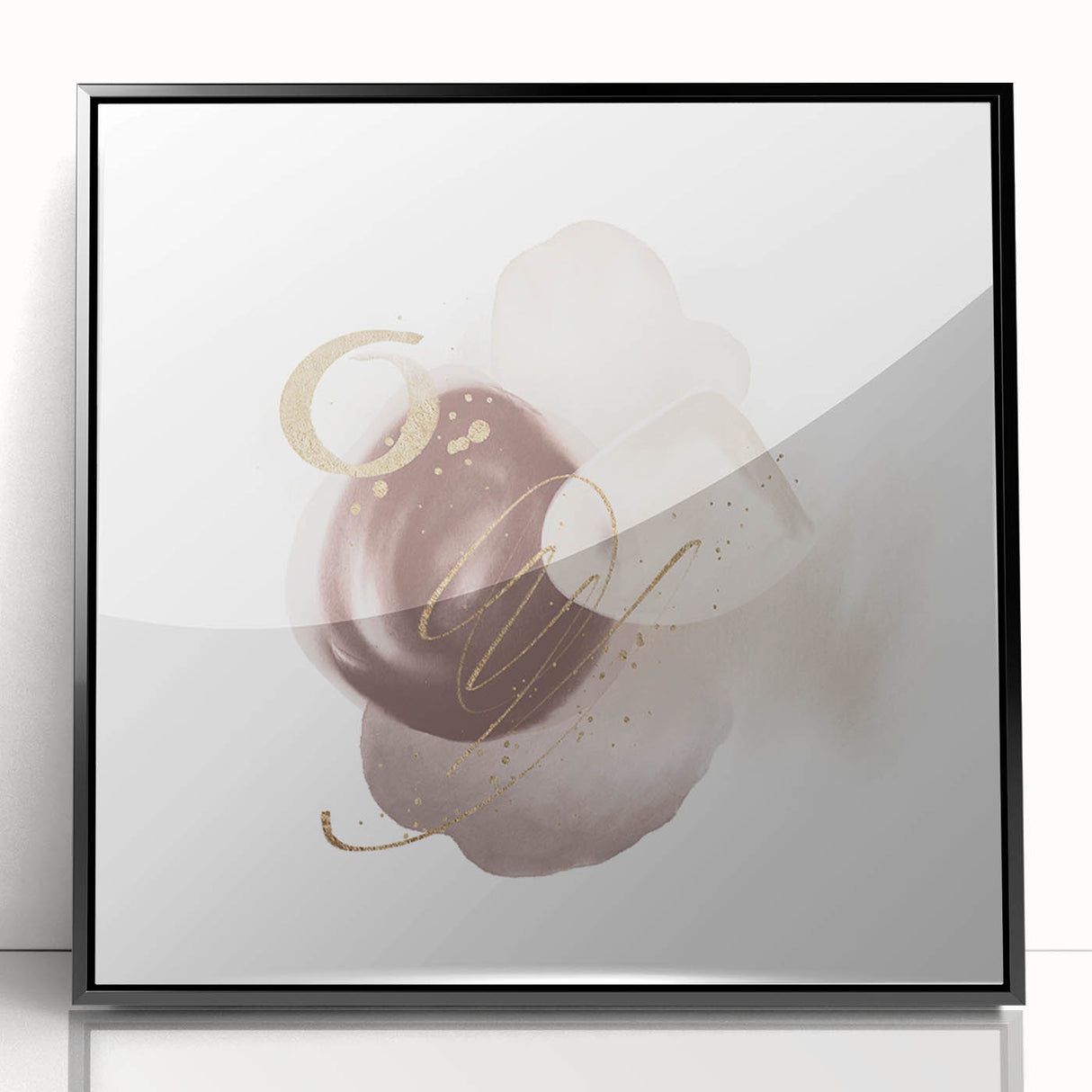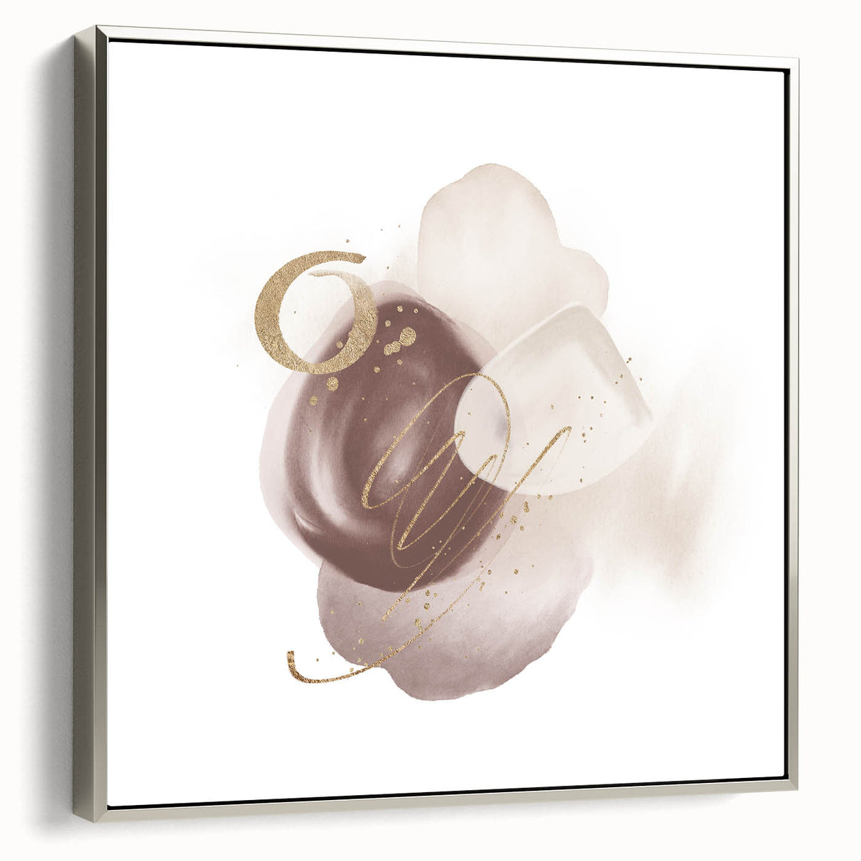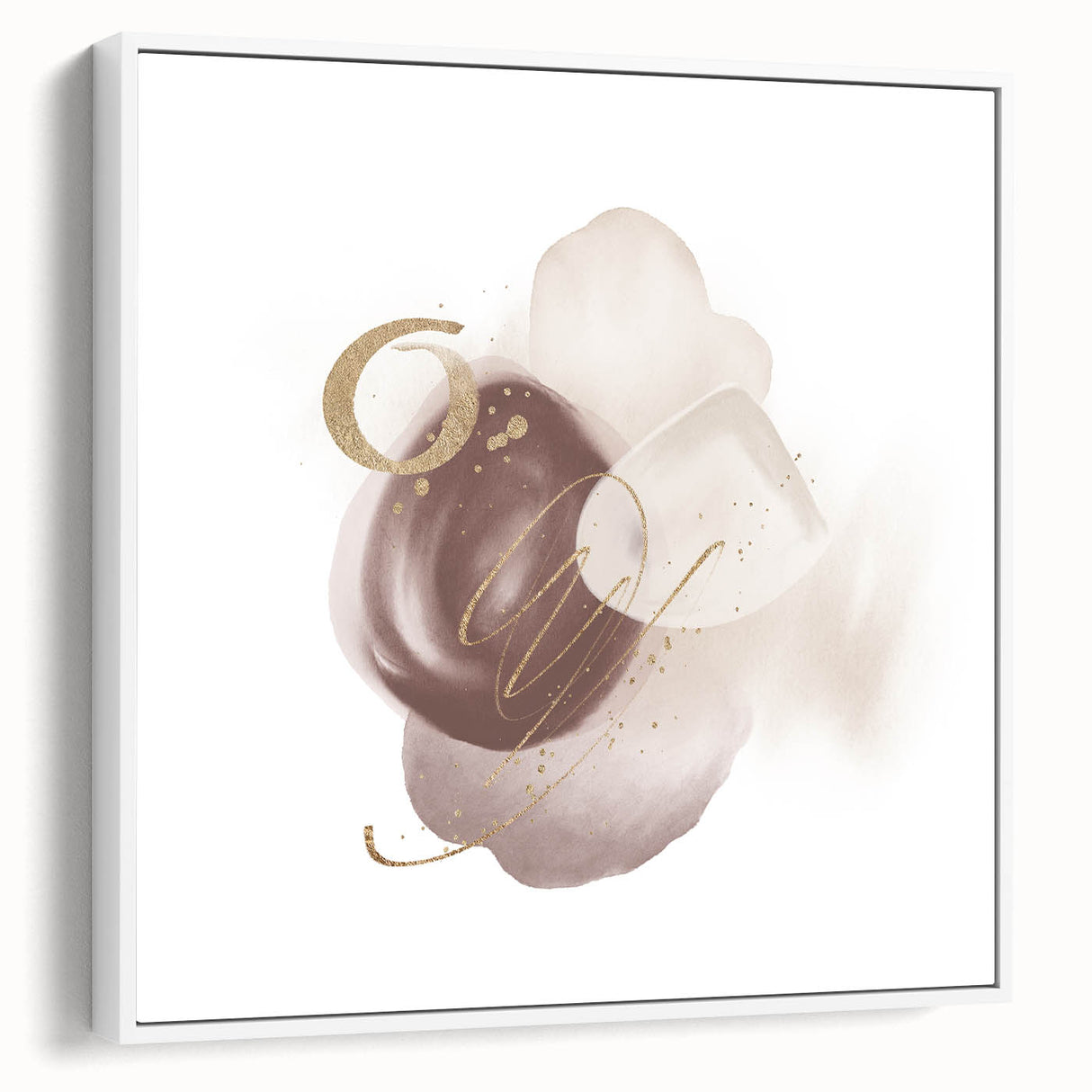 Abstract Geometric Framed Art – Minimalist Beige & Gold Wall Decor