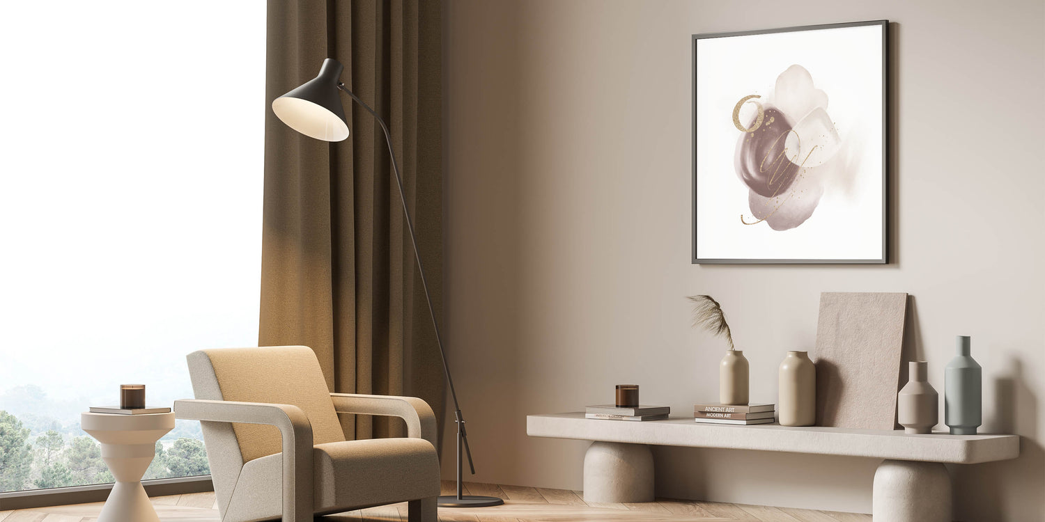 - Whether placed in a bedroom, hallway, or reading nook, this framed abstract geometric art brings softness and style to any space. With unique geometric designs on premium materials, this minimalist wall art enhances modern living spaces with warmth, fluidity, and quiet sophistication.
