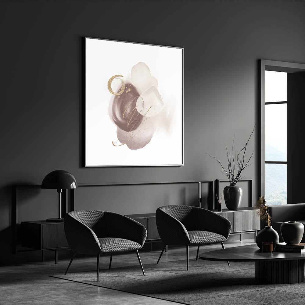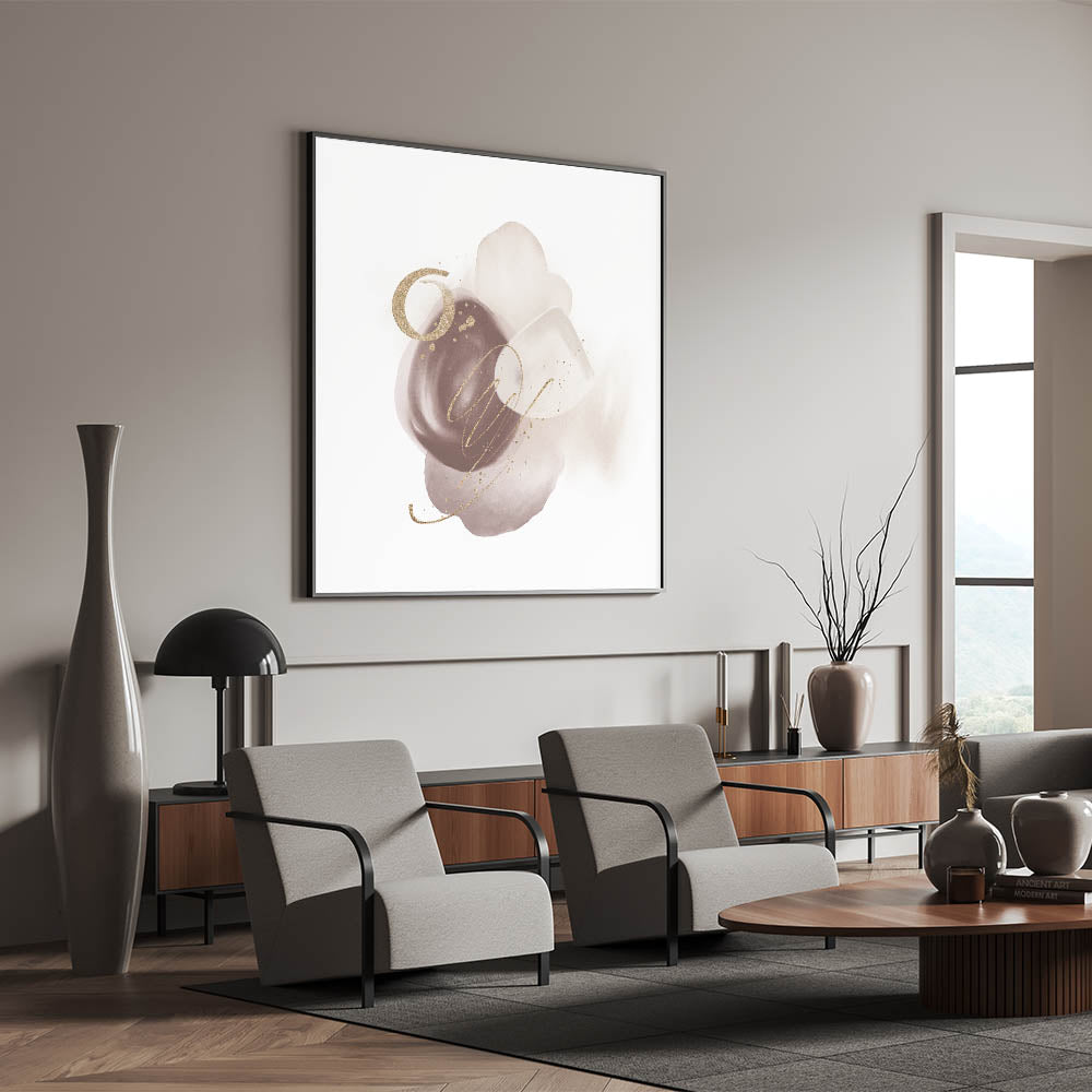Add warmth and modern elegance to your décor with this geometric minimalist abstract wall art. Showcasing a fluid blend of soft beige, taupe, and creamy white tones contrasted with a rich chocolate brown form, this piece is gracefully finished with flowing gold accents. It’s a stunning representation of contemporary geometric design, offering calm energy and a refined look.