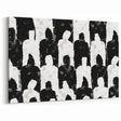 Introduce a bold statement to your space with this artistic black and white silhouette canvas. This modern abstract art piece features an intriguing pattern of alternating black and white human silhouettes, creating a visually compelling composition. The unique design and intricate details make this artwork a perfect addition to any contemporary decor.