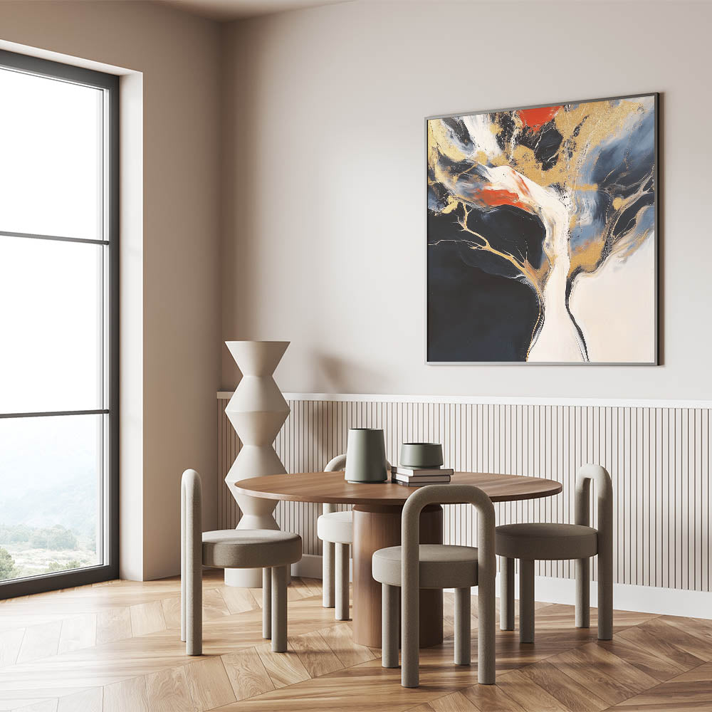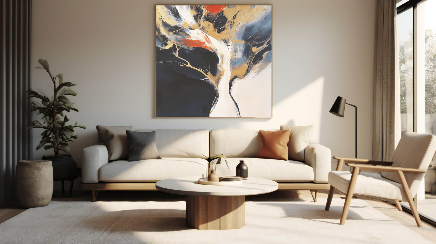 This large abstract wall art adds character to living rooms, offices, or studios. Designed to elevate interiors with modern style and artistic balance. A must-have contemporary abstract canvas that blends form, color, and elegance. Make your space feel alive with this inspiring wall art.