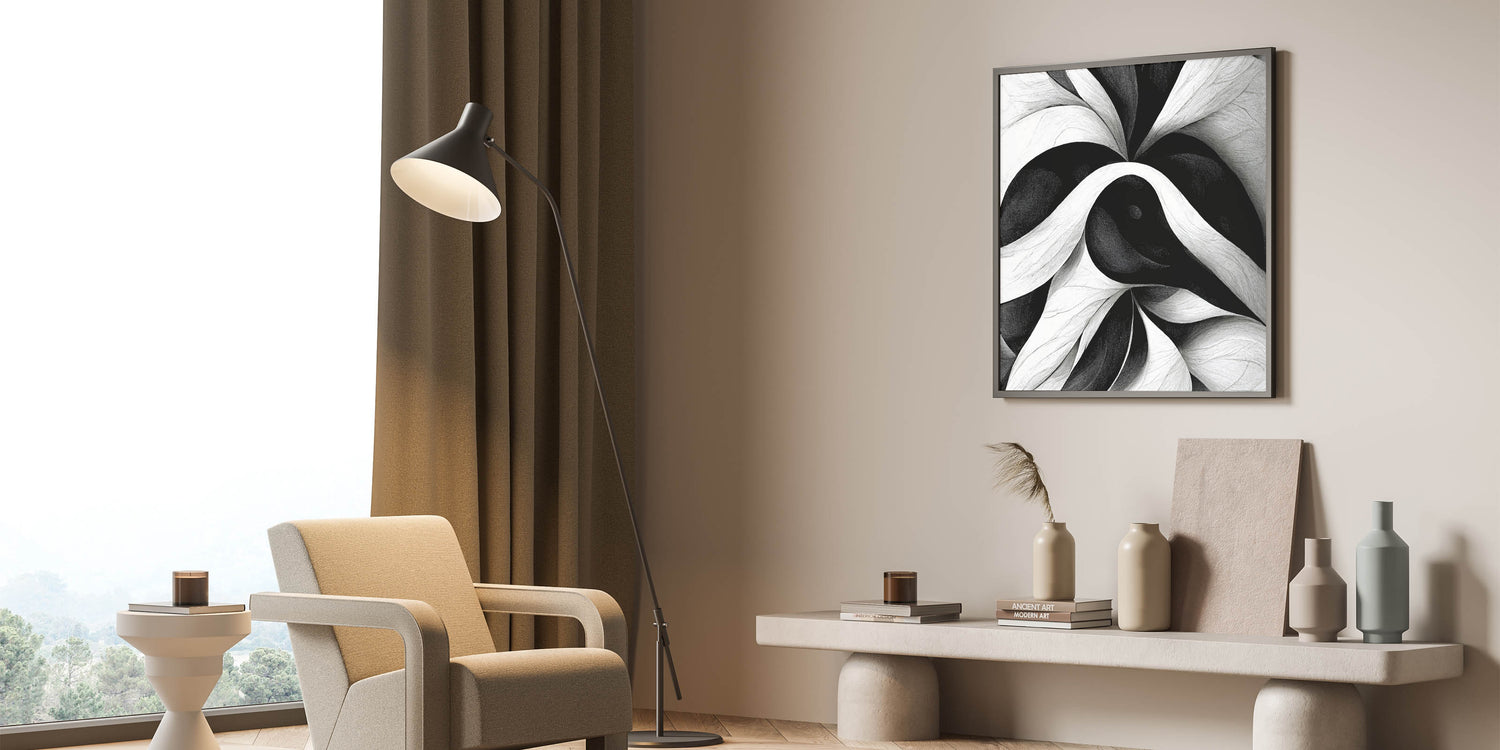 Contemporary Black and White Abstract Canvas - Elegant Monochrome Art