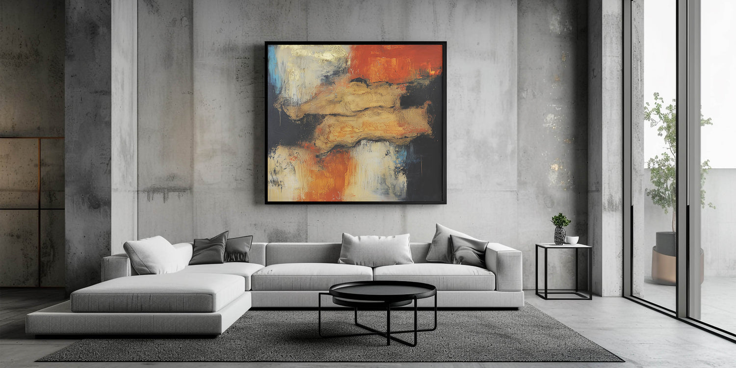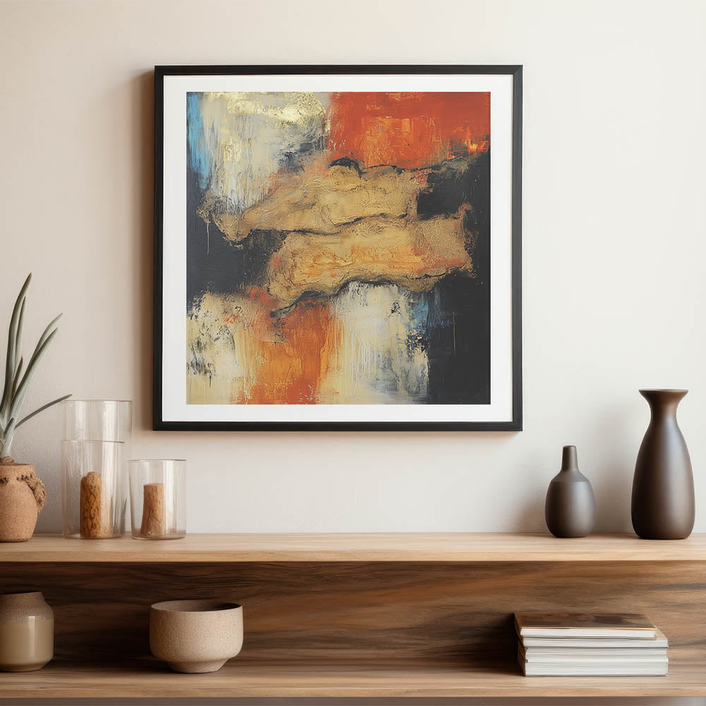 Grounded in warmth and texture, this piece from our Earthen Harmony Abstracts is a timeless take on abstract wall art. With layered forms in brown, beige, and deep charcoal, it blends minimalism with depth. The balance of shapes and golden detailing brings refined sophistication to any room, making it an elegant choice for modern abstract art lovers.