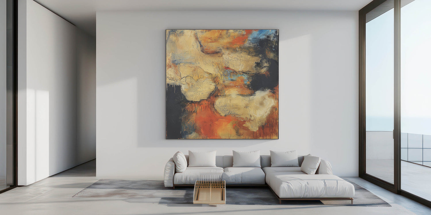 Ignite your interior with the raw vibrance of this Earthen Harmony Abstracts creation. This compelling abstract wall art features molten blends of ochre, beige, burnt orange, and sky blue layered with thick texture and bold movement. The composition radiates depth, emotion, and timeless modern abstract art appeal.