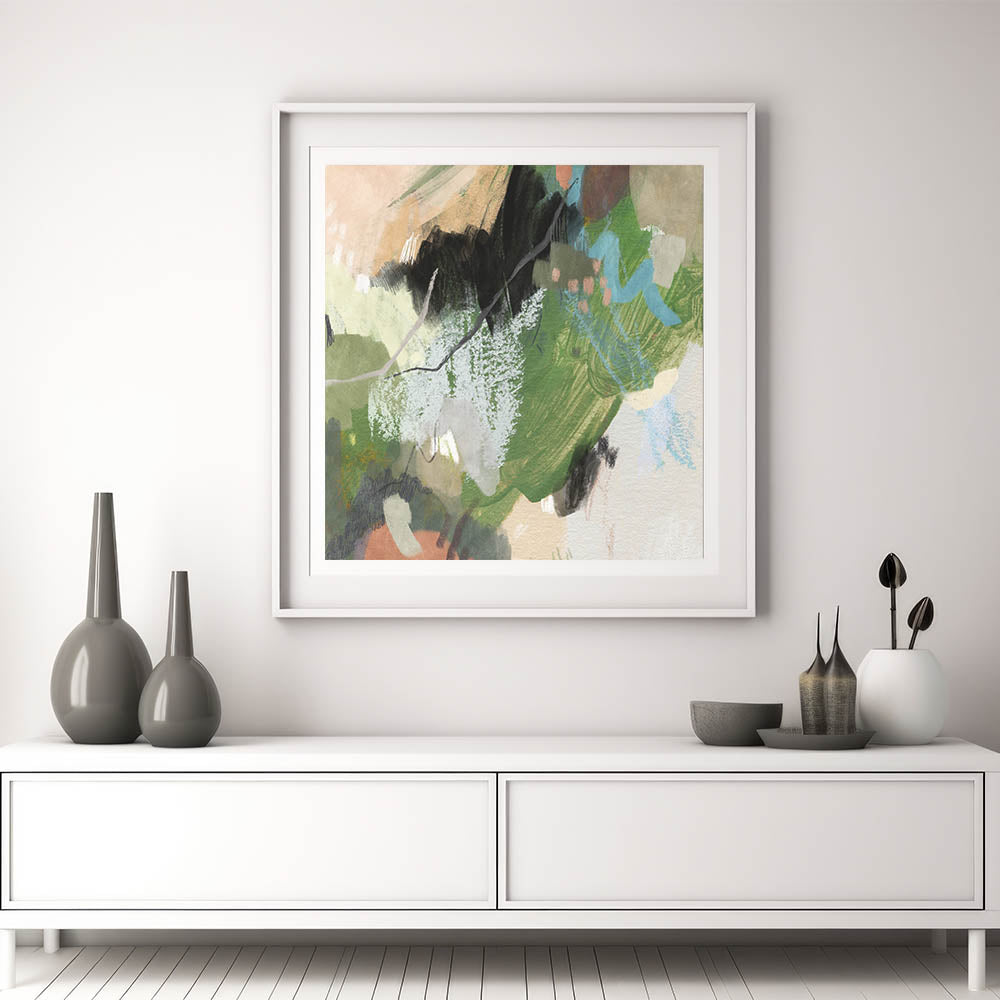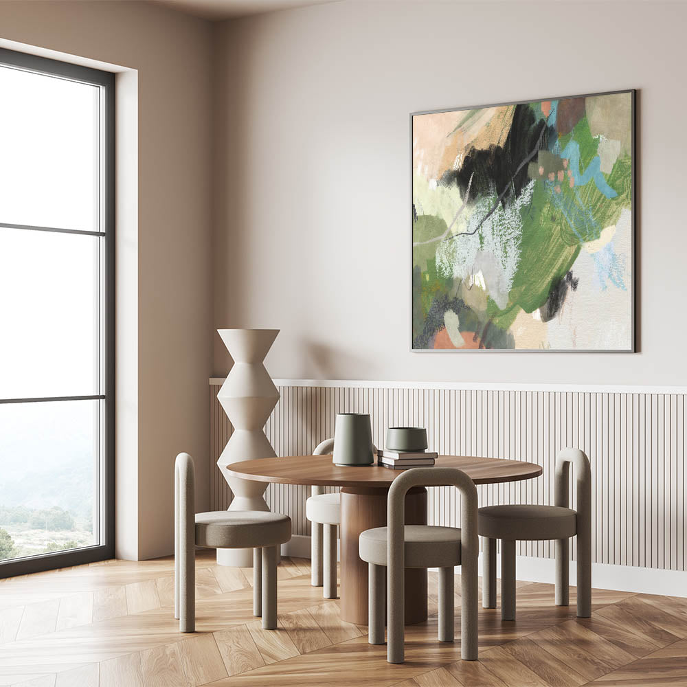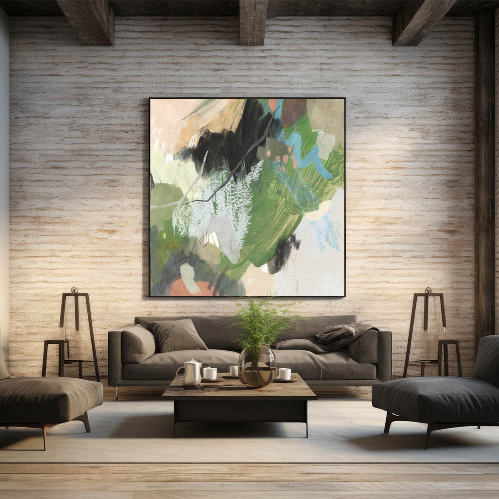 This energetic piece from the Earthen Harmony Abstracts collection blends natural textures and earthy movement into one captivating scene. Rich layers of green, soft beige, and earthy pastels create an organic flow that mimics the feel of landscapes in motion. Full of painterly detail and layered depth, it's a perfect fit for minimalist wall decor with an expressive soul.