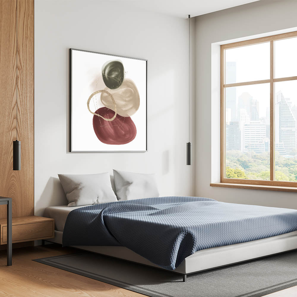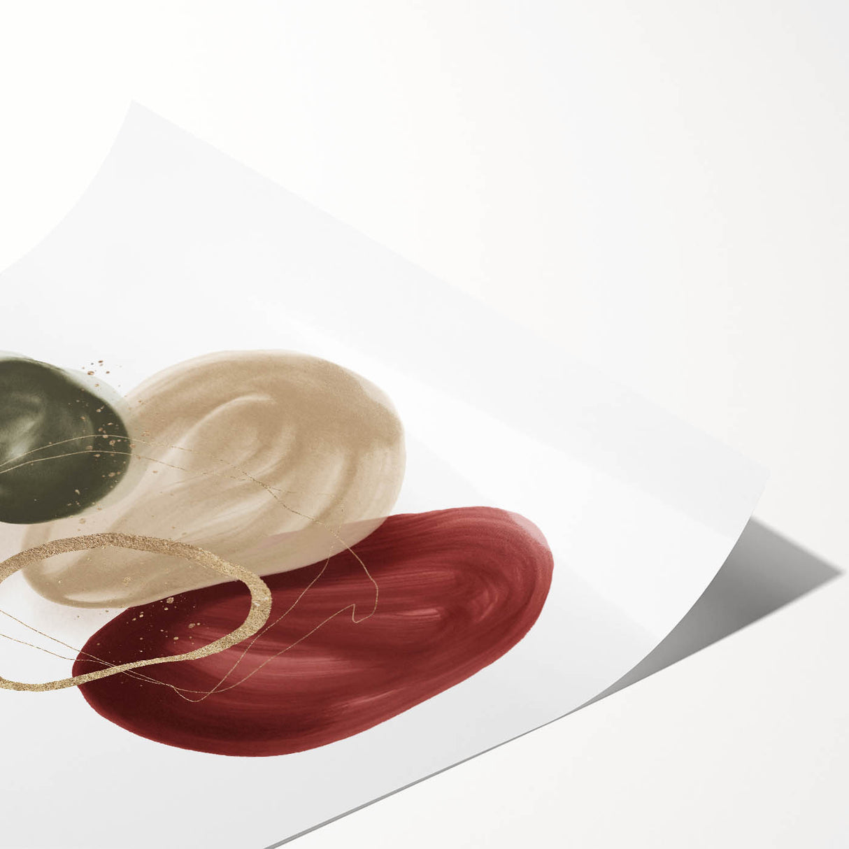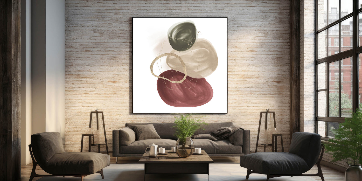 Add sophisticated flair to your space with this geometric minimalist abstract wall art, designed for lovers of modern elegance. Featuring a harmonious blend of earthy tones—rich burgundy, muted beige, and deep olive green—this artwork adds a refined statement to both contemporary and minimalist interiors. Accented with gold brush strokes and subtle textures, the design delivers visual depth while maintaining a calming, structured balance.