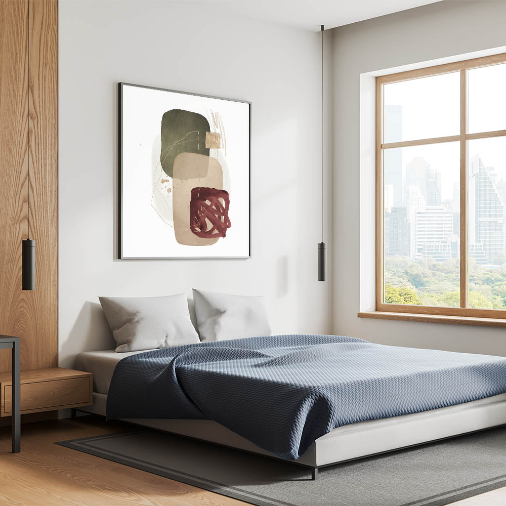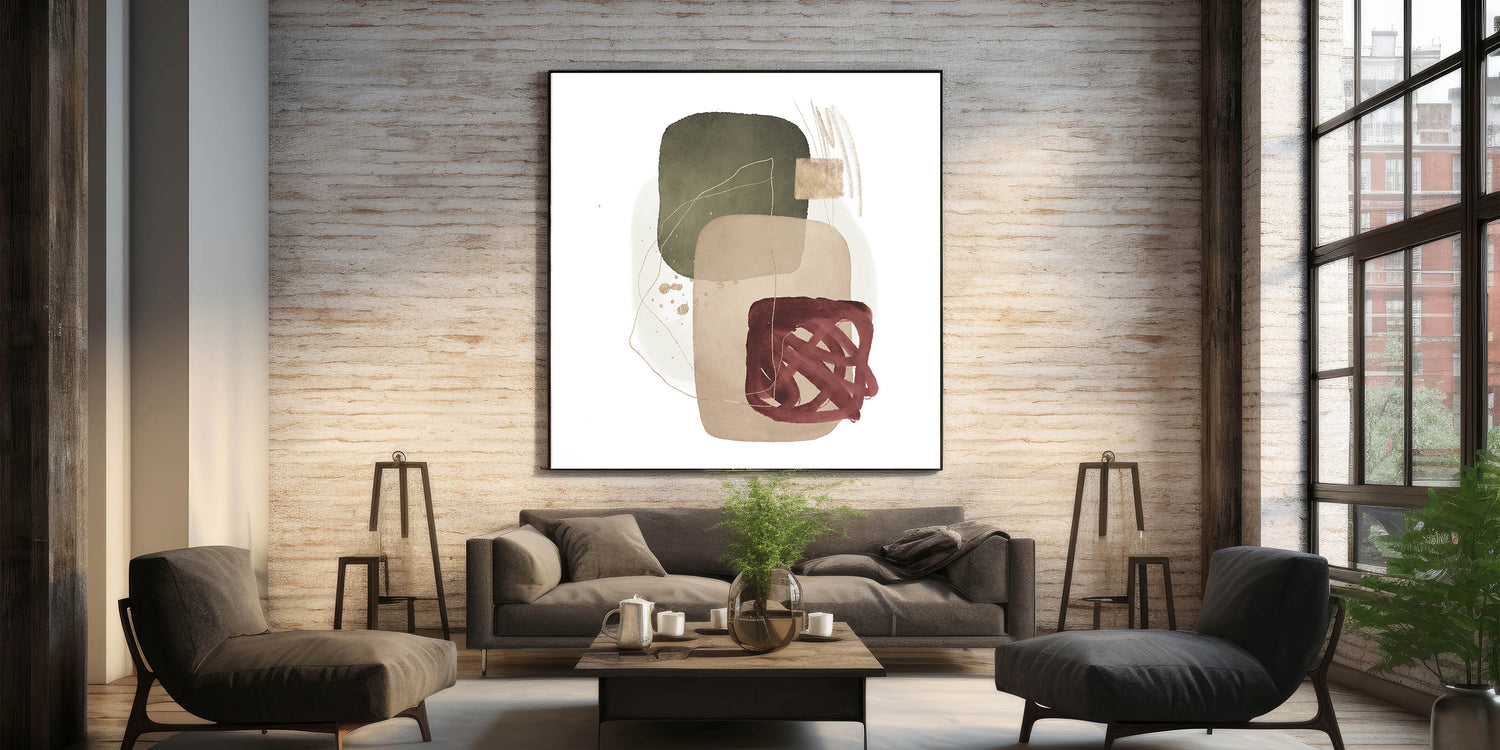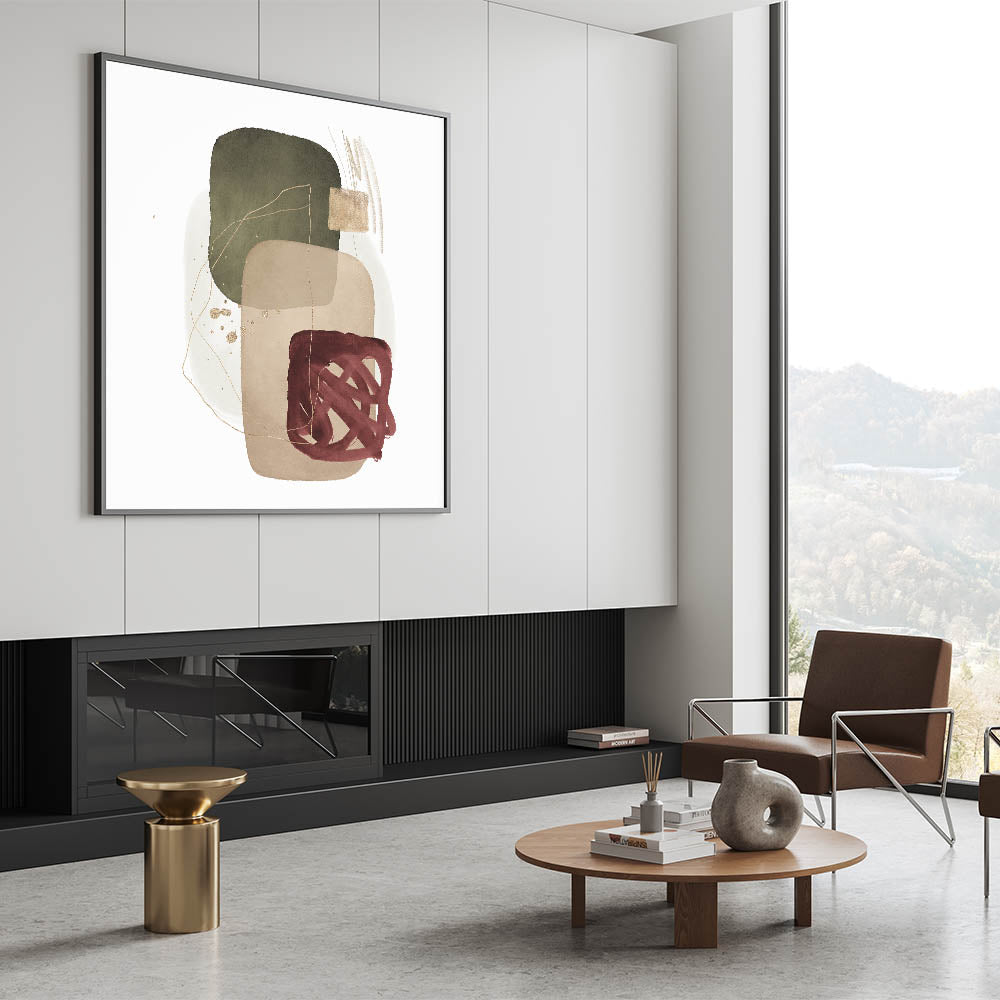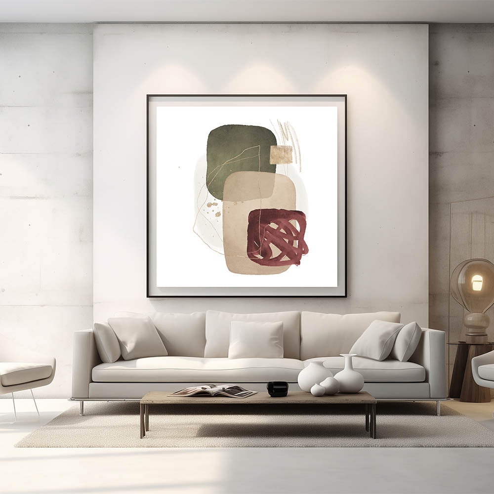 Let this minimalist wall art enhance your home or office with its striking geometric shapes and sophisticated color palette. Whether you're creating a focal point in your living room or adding a subtle statement piece to your office, this artwork brings modern elegance and style to any interior.