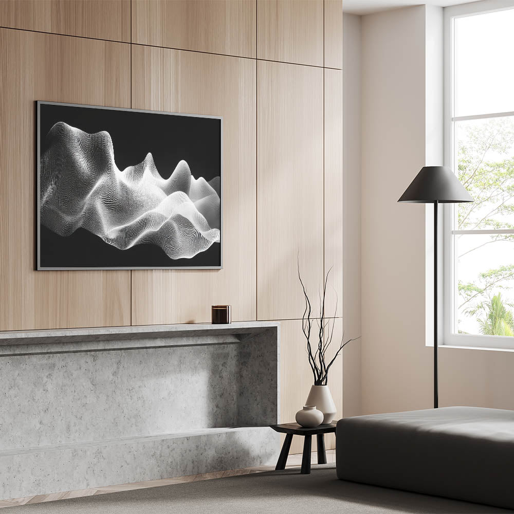 Large Abstract Wall Decor – Black & White Digital Wave Motion