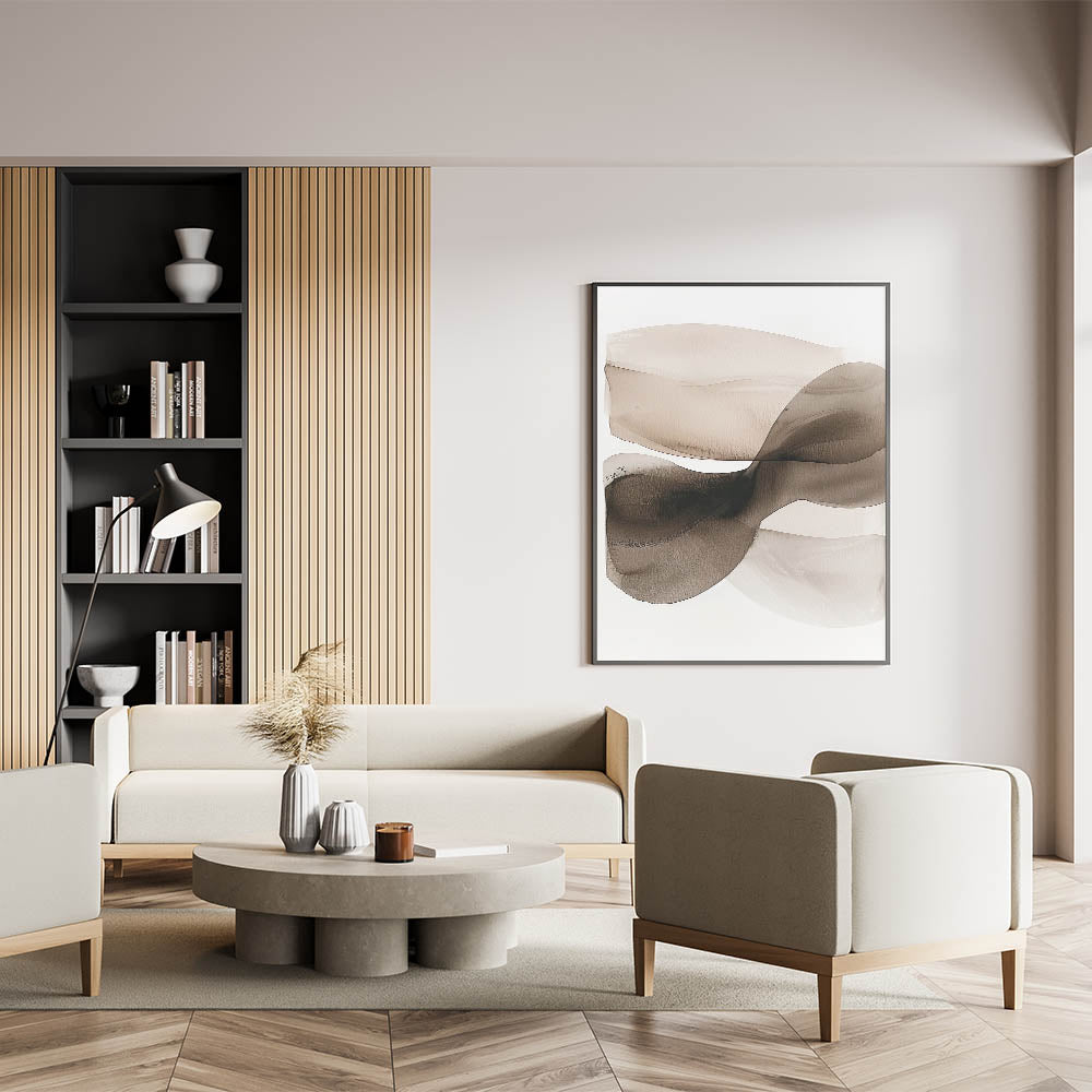 Soft, organic, and visually soothing, this geometric minimalist abstract wall art blends natural curves with earthy tones for a refined, contemporary look. The intersecting shapes in deep brown and warm beige create a gentle movement, making this piece ideal for serene interiors that embrace subtle sophistication.