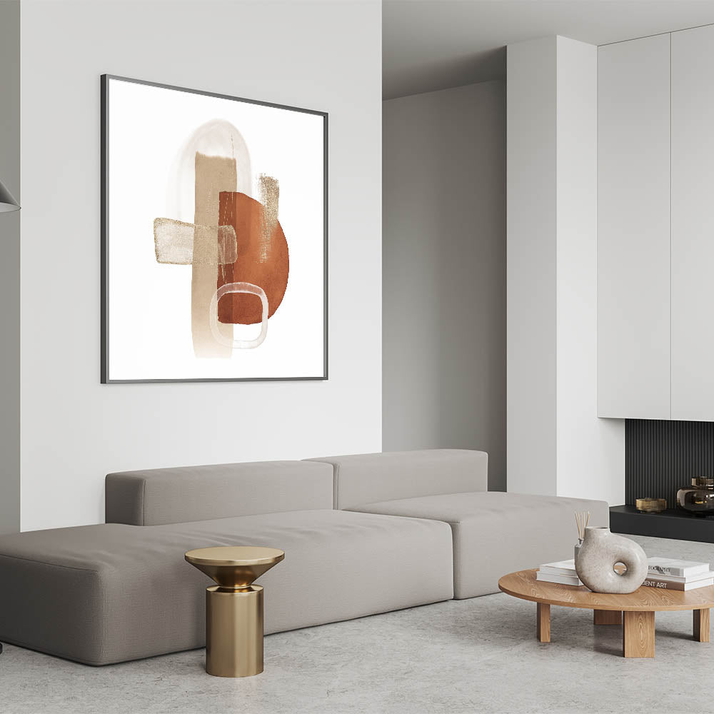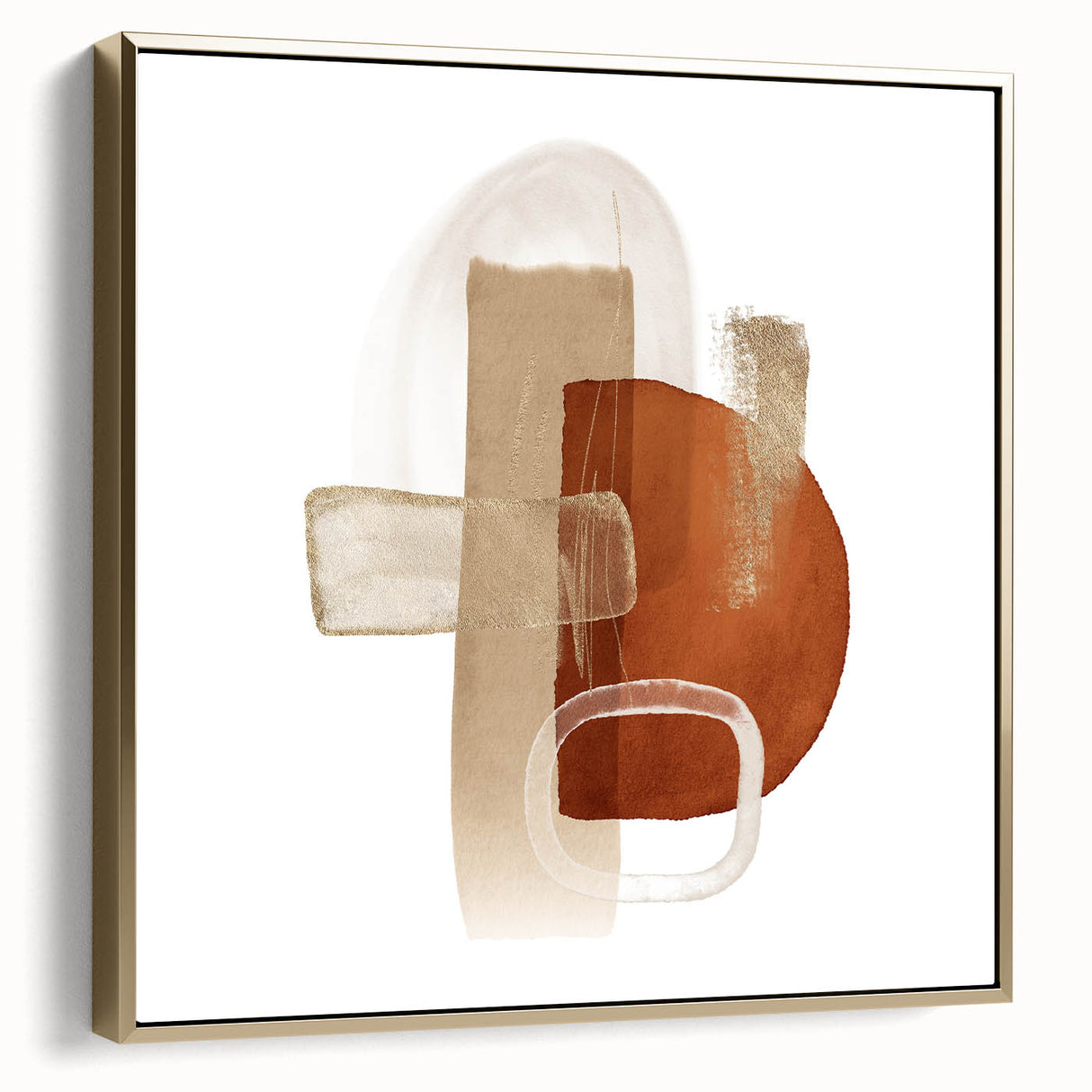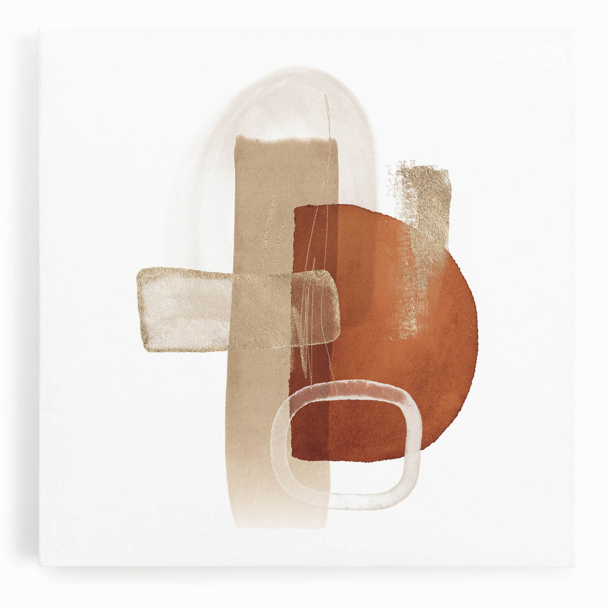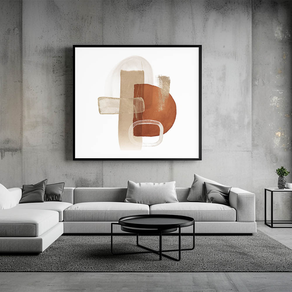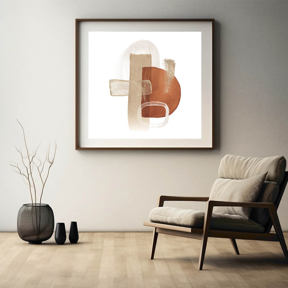 Add a touch of elegance to your home or office with this high-quality geometric minimalist abstract wall art. Featuring warm earthy tones of terracotta, beige, and gold, this piece effortlessly combines organic shapes and soft textures to create a harmonious, contemporary look that fits a variety of interior styles.