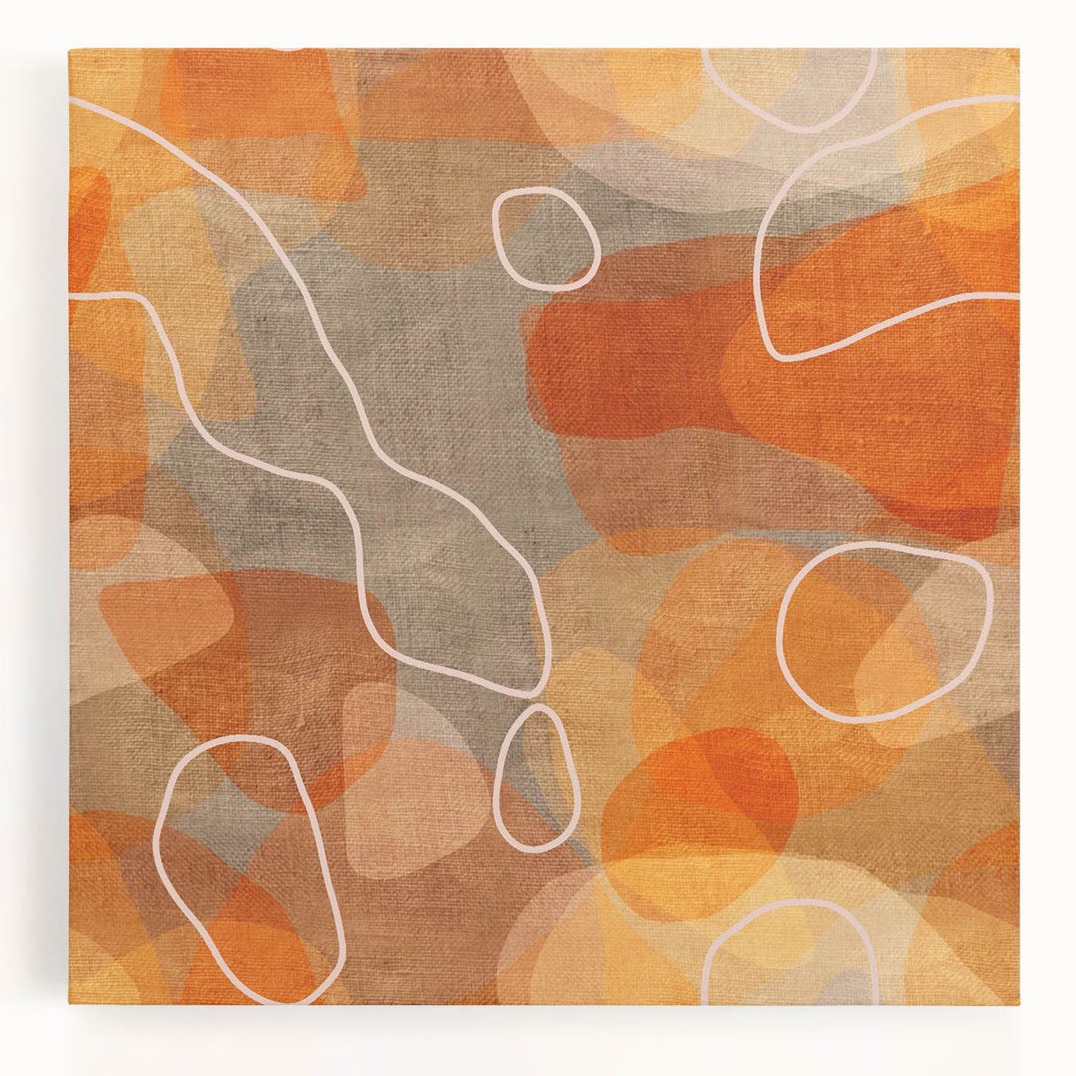 • Abstract organic pattern in shades of orange, peach, beige, and tan