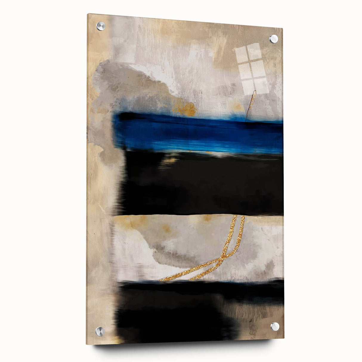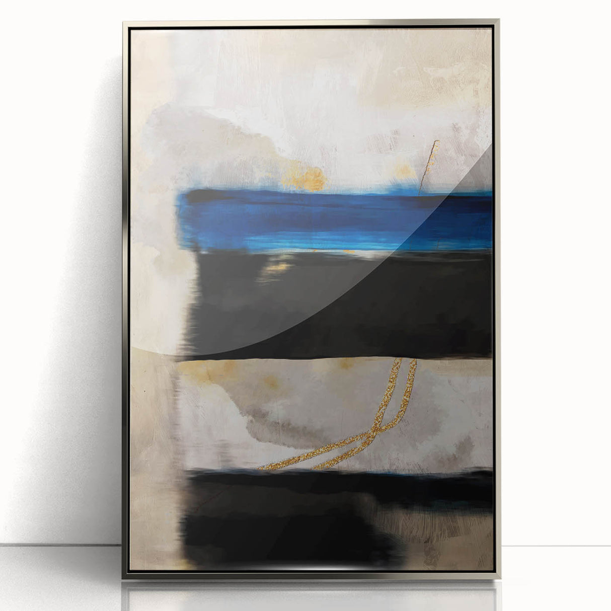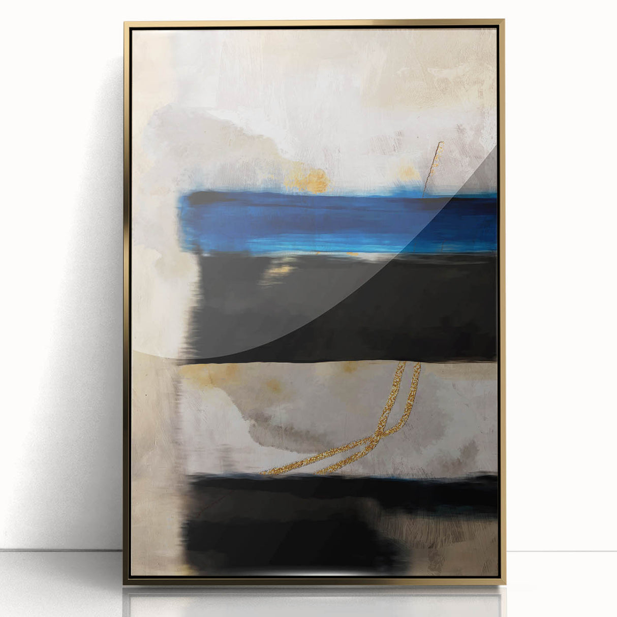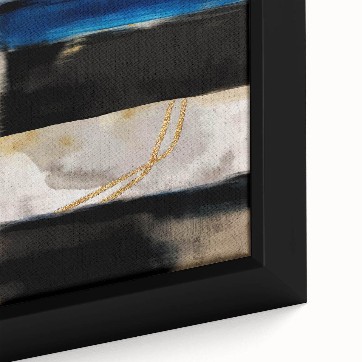 Balance bold contrast and refined simplicity with this Modern Abstract Canvas Print from the Timeless Textures collection. Deep black strokes and a vibrant royal blue layer across a textured beige and cream background, punctuated with delicate golden lines. This piece brings power and elegance to modern interiors.