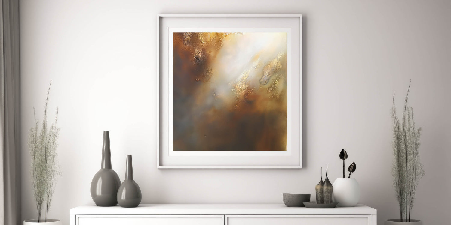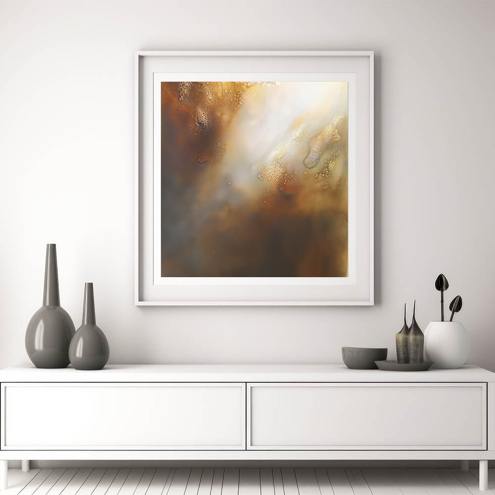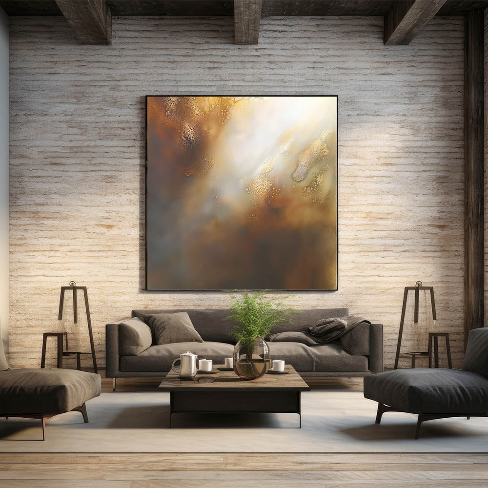 Create a warm and radiant focal point in your home with this piece of modern abstract wall art. Featuring luminous tones of gold, beige, soft white, and rich brown, this design brings depth and tranquility to any room. The textured transitions and soft lighting effects give it an ethereal feel, ideal for interiors that celebrate both minimalism and mood.