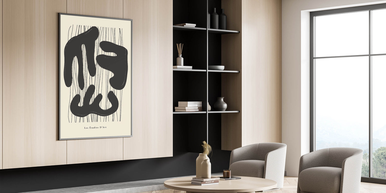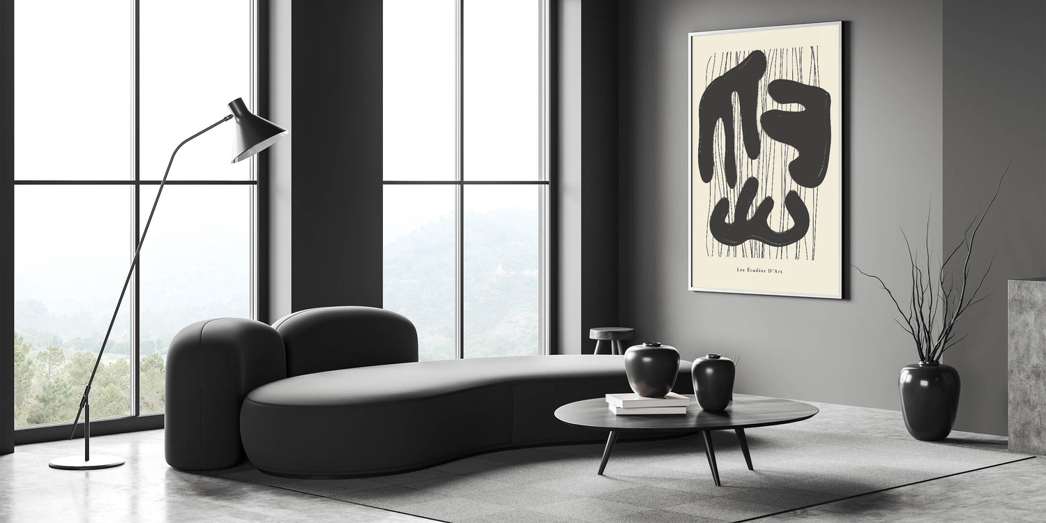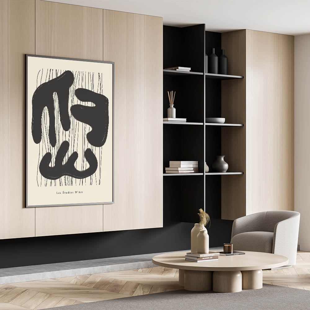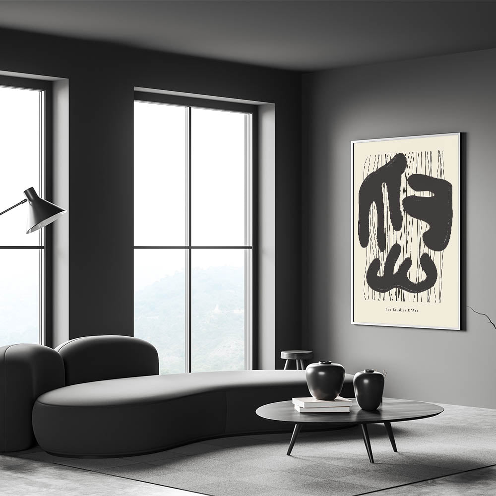 Embrace the essence of modern art with this striking Black and White Minimalist Art piece. Featuring bold, abstract shapes intertwined with fine lines, this artwork offers a dynamic yet refined aesthetic. The high-contrast design draws the eye, making it a captivating focal point for any room. Perfect for contemporary spaces, this piece is versatile enough to complement a variety of interiors, from minimalist to eclectic.