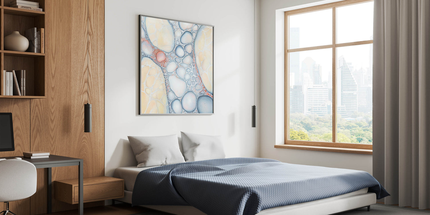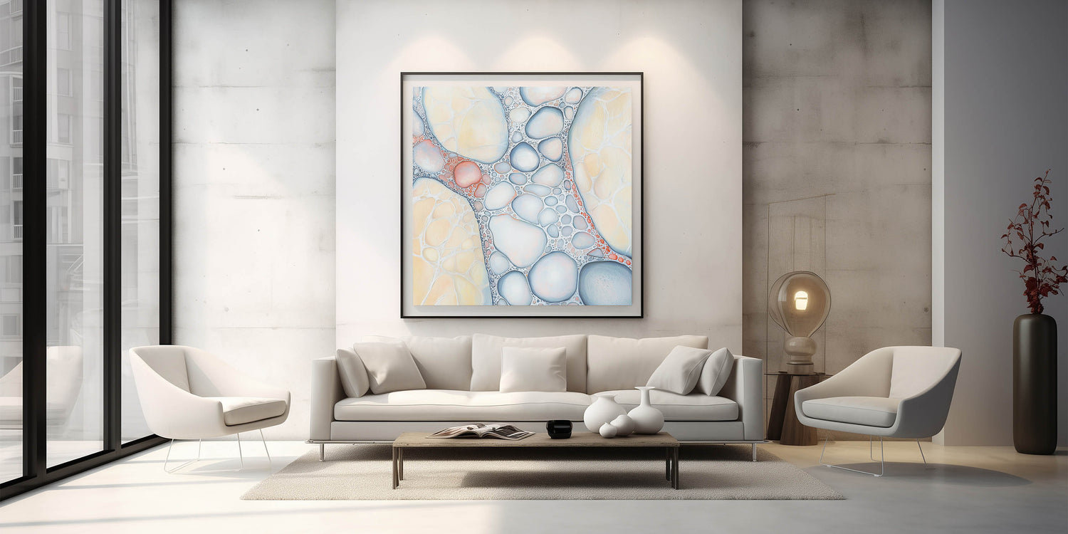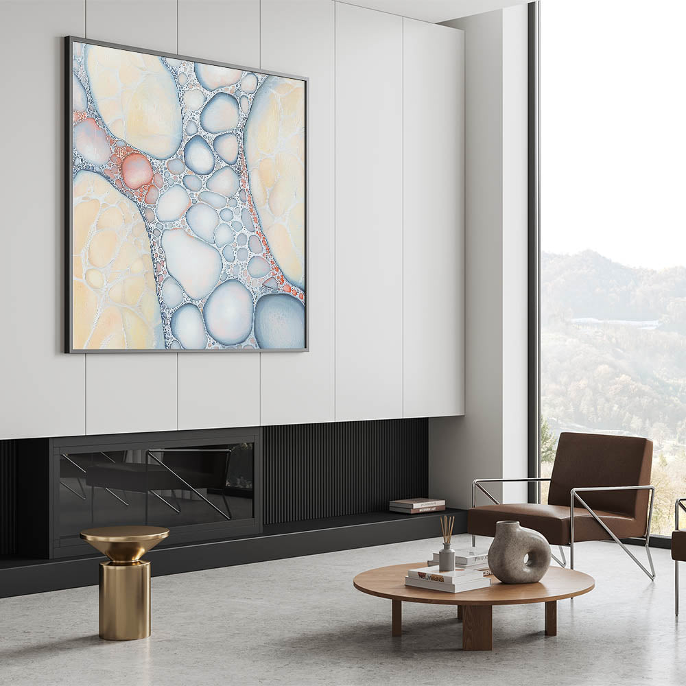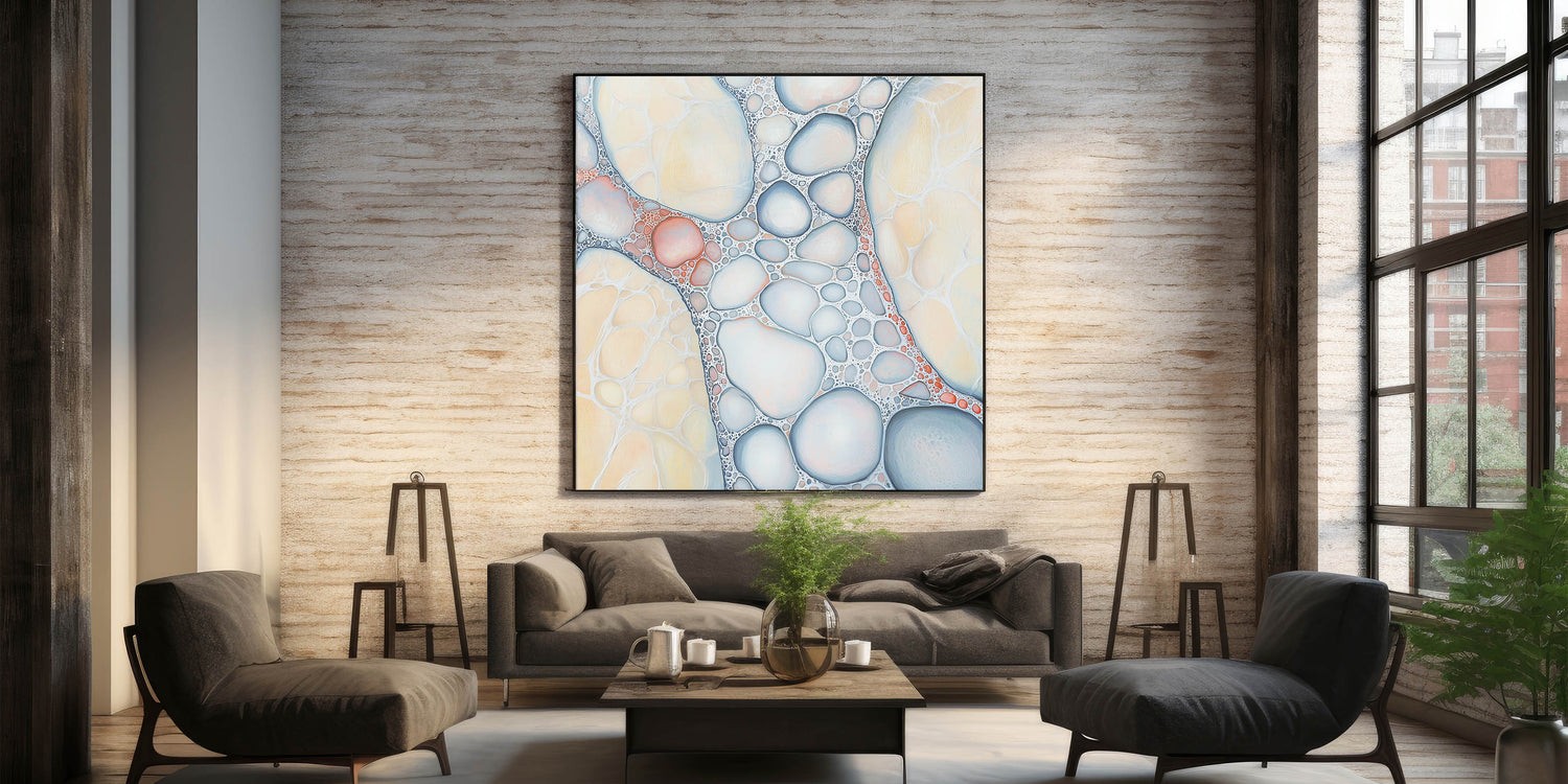 Bring organic elegance into your home with this light and airy contemporary canvas art. Inspired by earth’s microscopic beauty, this piece adds depth and balance without overwhelming. Among our most refined neutral abstract prints, it’s a modern nod to nature’s hidden artistry.