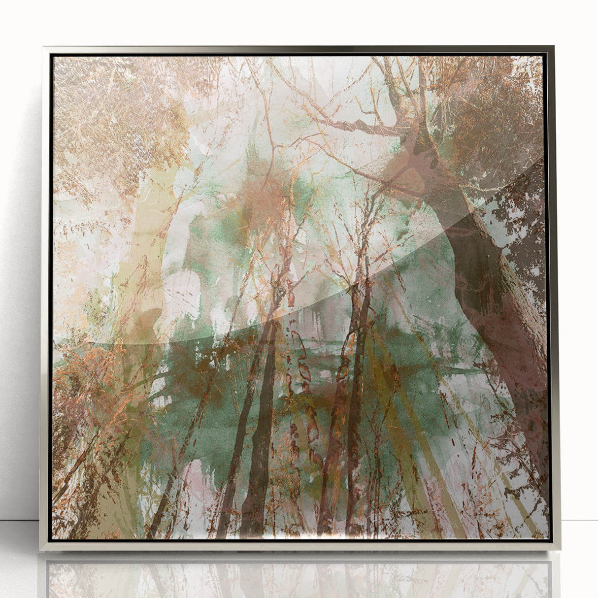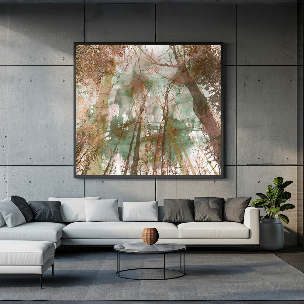 • Abstract forest composition with natural textures and earthy green-brown tones