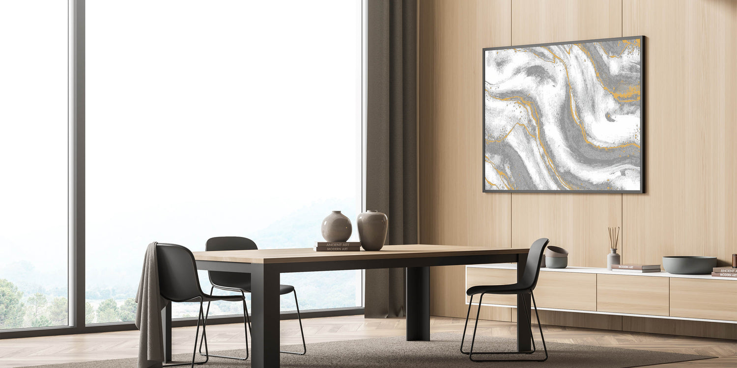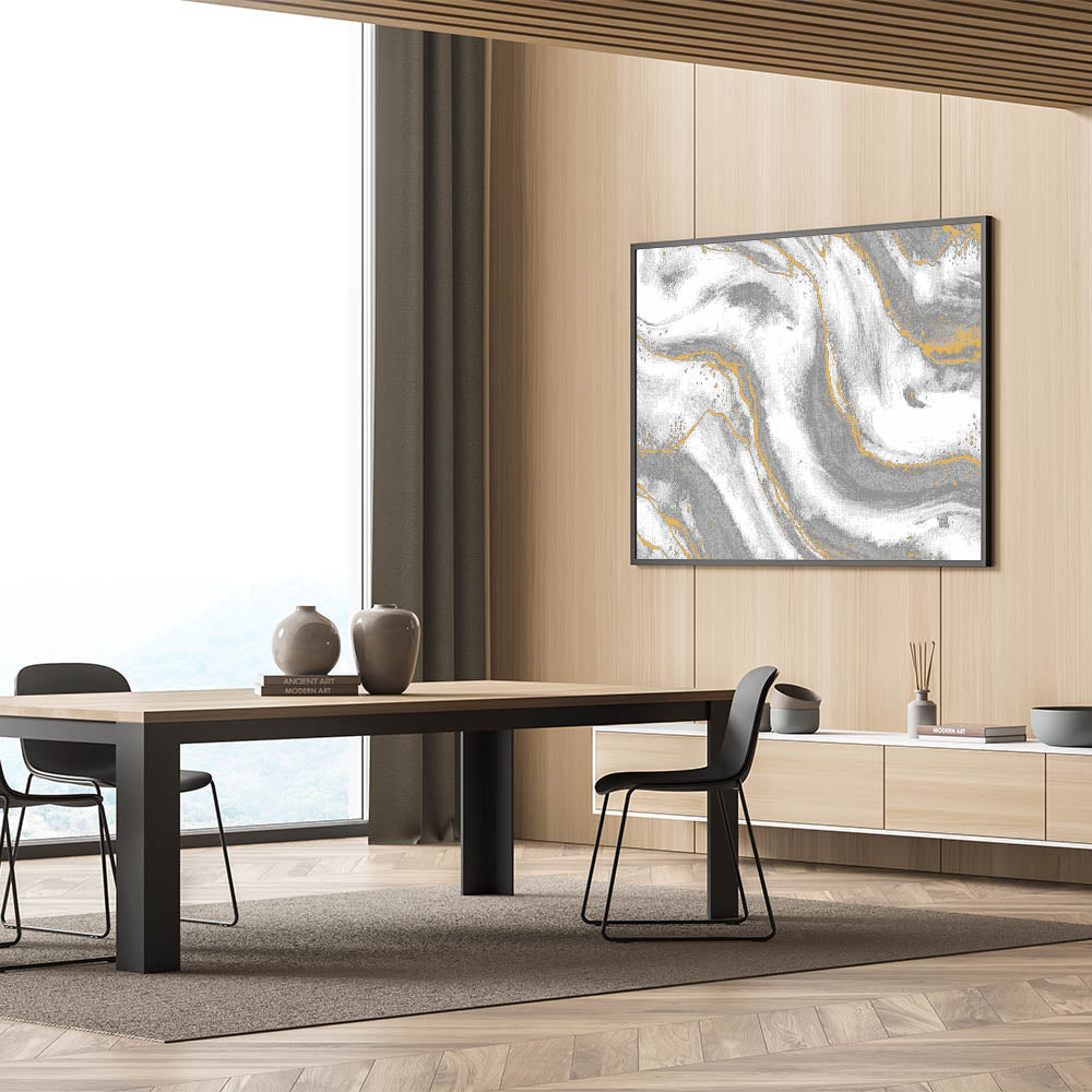 This large abstract wall décor is ideal for spaces that embrace elegance with a modern twist. Perfect for entryways, living rooms, or office walls, its metallic tones and flowing strokes elevate any interior. Discover contemporary framed abstract art that brings timeless richness and texture to your space.