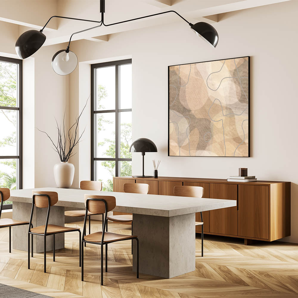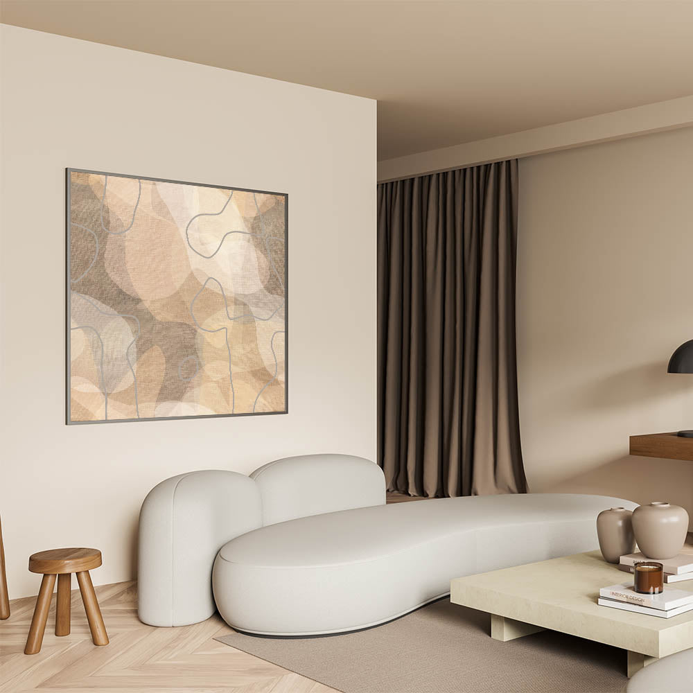 This contemporary framed abstract art brings subtle movement and warmth into any room. Whether styled in a living room, hallway, or office, it complements neutral palettes and modern decor effortlessly. With multiple material options, from rolled canvas to framed acrylic glass, you can choose the perfect fit for your space. Add depth and serenity to your home today.