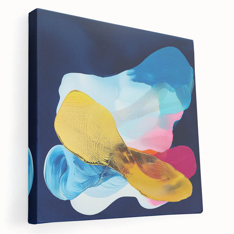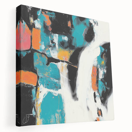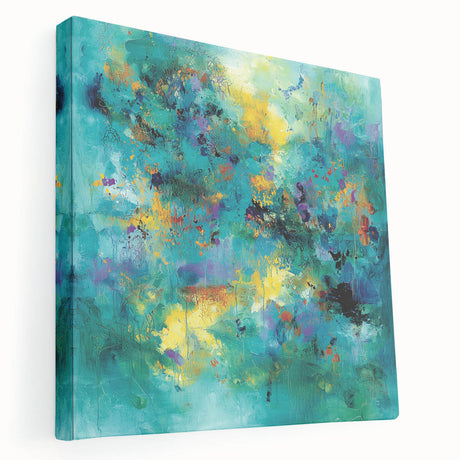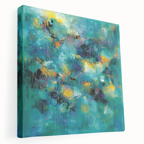 • Abstract floral stretched canvas artwork showcasing vibrant colors and intricate patterns, ideal for modern home decor. Perfect for enhancing living spaces with a touch of elegance.