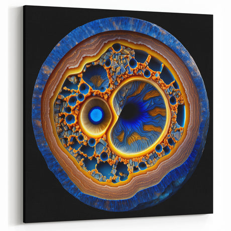 • Abstract floral wall art on a stretched canvas, showcasing vibrant colors and intricate patterns, viewed from the side to highlight its depth and texture, perfect for home decor.