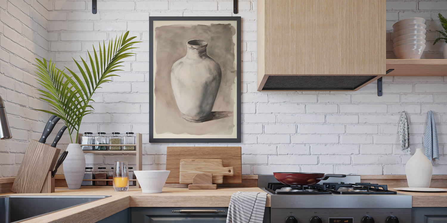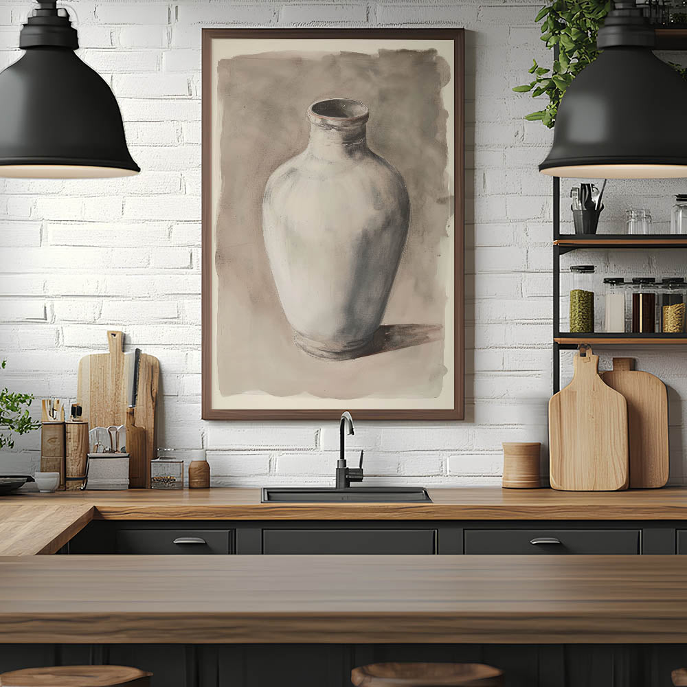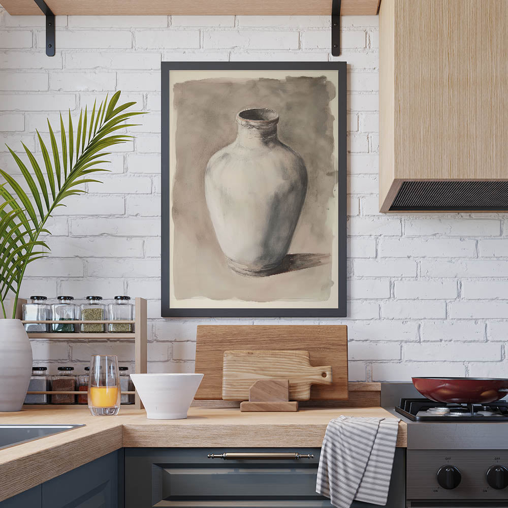 Add a touch of elegance to your kitchen with this stunning cookware wall art. Featuring a detailed depiction of a classic ceramic vessel, this artwork brings a sophisticated and timeless feel to any culinary space. Perfectly suited for food enthusiasts and lovers of unique kitchen wall decorations, this piece effortlessly complements both modern and rustic interiors.